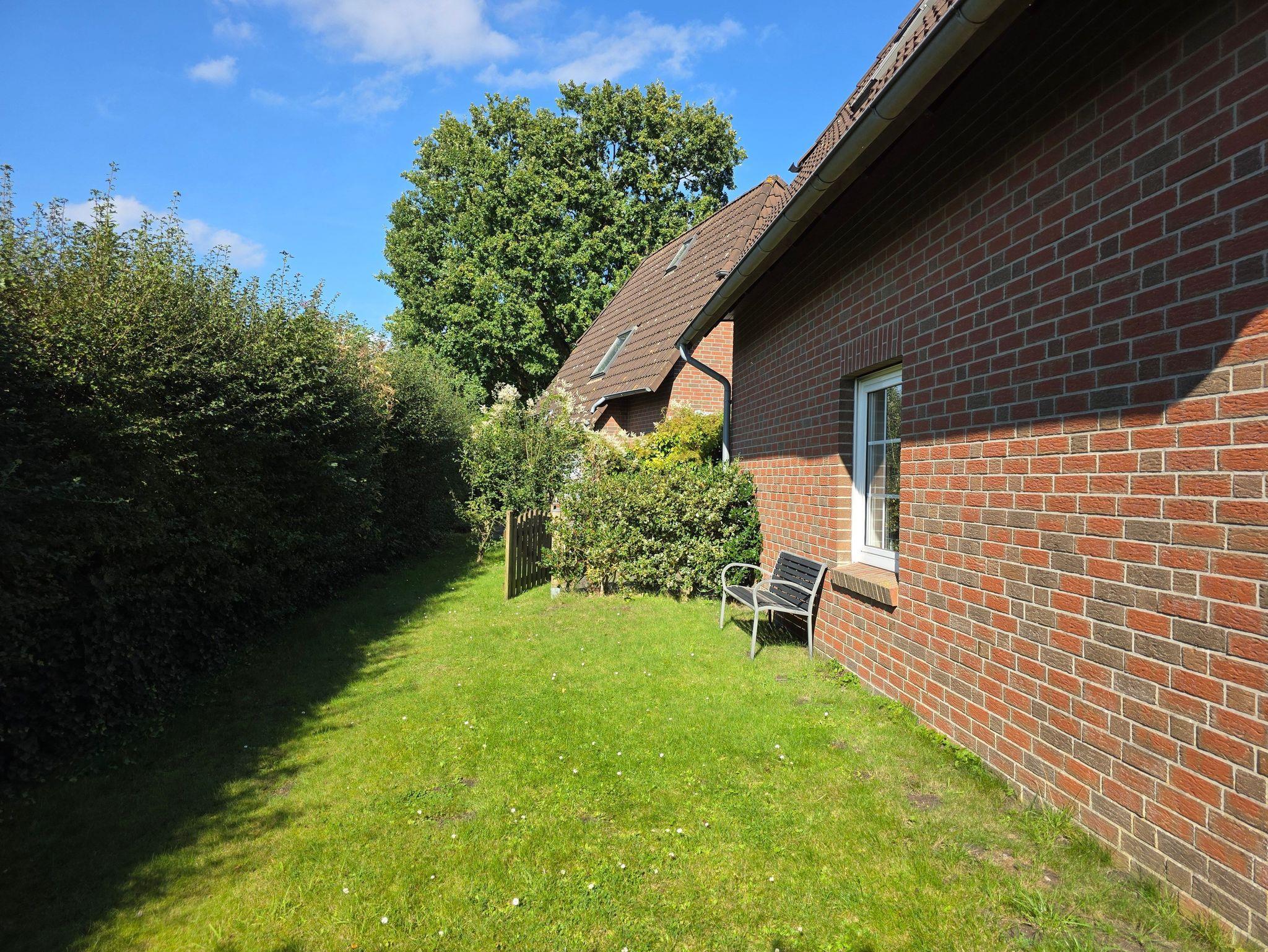 Das Ferienhaus ist komfortabel ausgestattet. Im Erdgeschoss befinden sich ein Gästebad, eine separate Küche und ein großzügiges Wohn- und Esszimmer mit Zugang zur Terrasse und dem Garten. Im ersten Obergeschoß befinden sich die beiden Schlafzimmer und das Badezimmer mit Dusche. Das Reihenendhaus verfügt über einen Garten und eine Terrasse an der Südseite des Hauses, die eine helle und freundliche Atmosphäre in den Räumen schafft und zum Essen, Trinken und Verweilen einlädt.