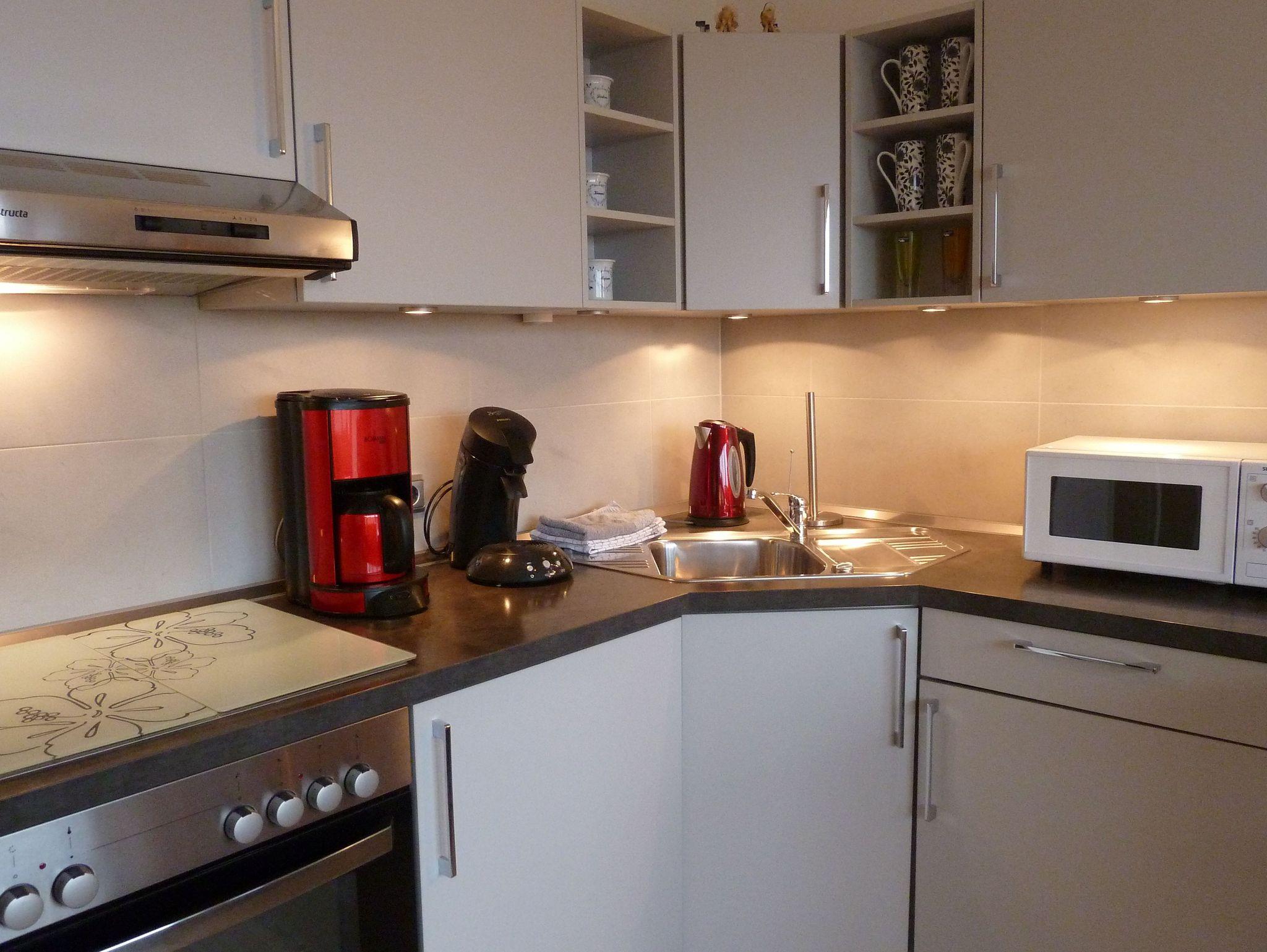 Herd, Backofen, Mikrowelle, Toaster und Kaffeemaschine