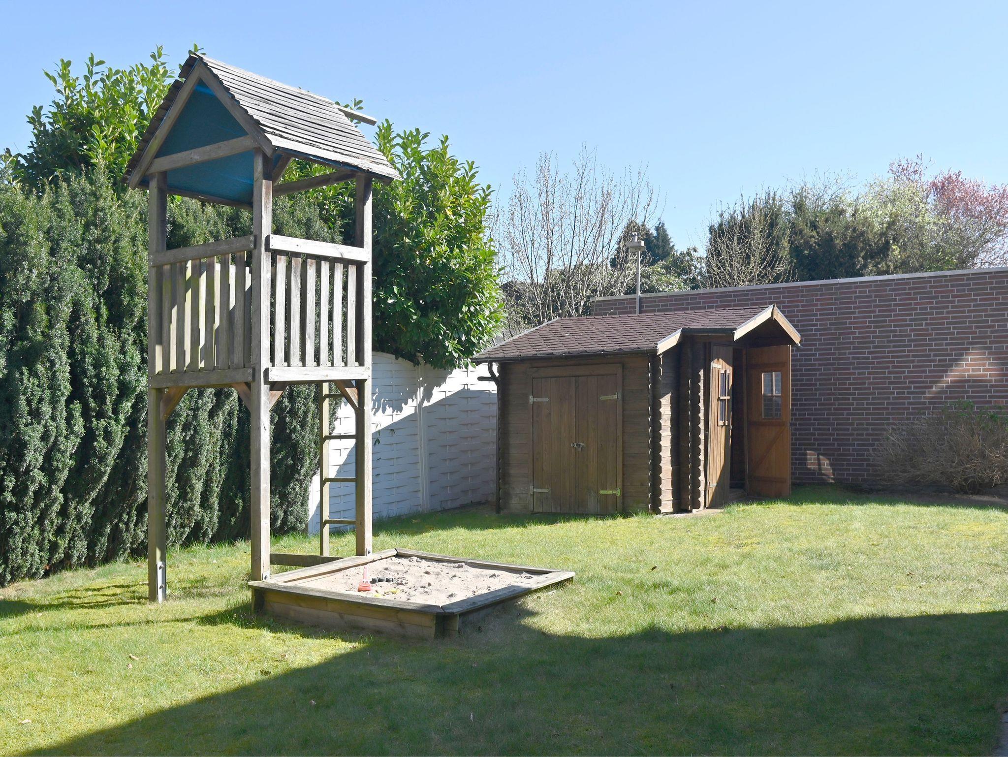 Garten mit großer Süd-Terrasse, Gartenmöbeln und Liegen, zweite Terrasse mit Kamingrill, Kletterhaus und Sandkiste, Sauna, Fliegenschutzgitter, Fußbodenheizung, CD-Player, Fernseher, HIFI-Anlage, SAT-Anlage, Spielesammlung, Senseo-Pad-Automat, Waschmaschine, Trockner, Carport, W-LAN.