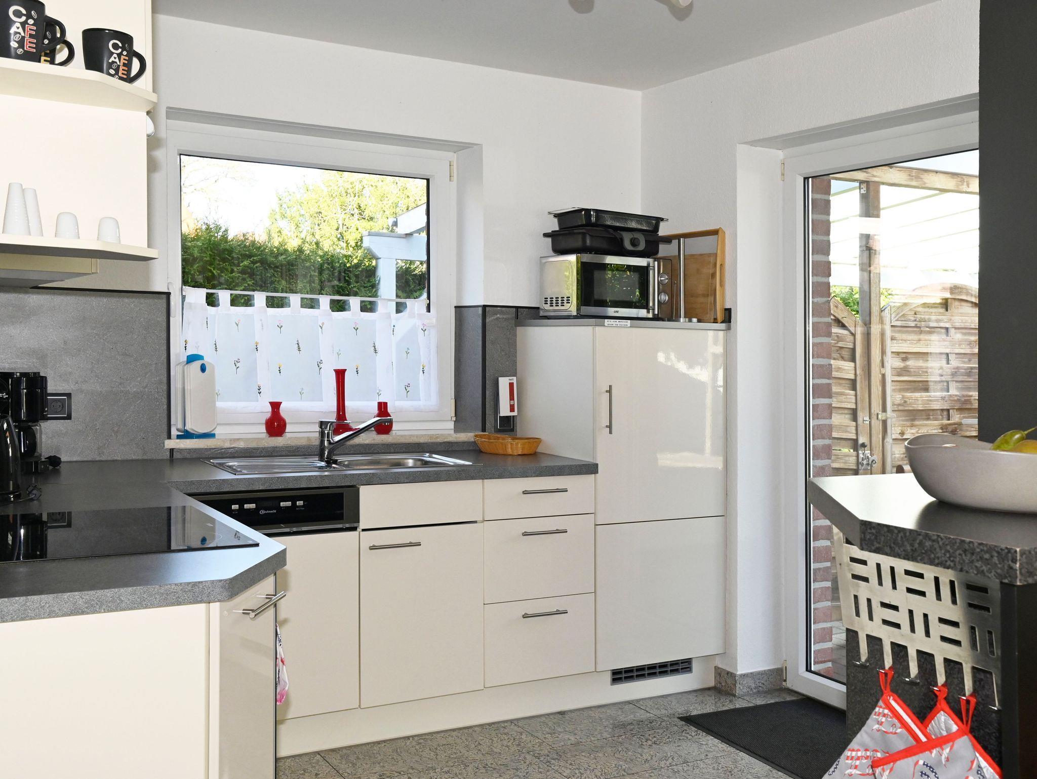komplett eingerichtet, Cerankochfeld, Backofen, Dunstabzugshaube, Einbauküche, Gefrierfach, Geschirrspüler, Kaffeemaschine, Kühlschrank, Mikrowelle, Toaster, Wasserkocher