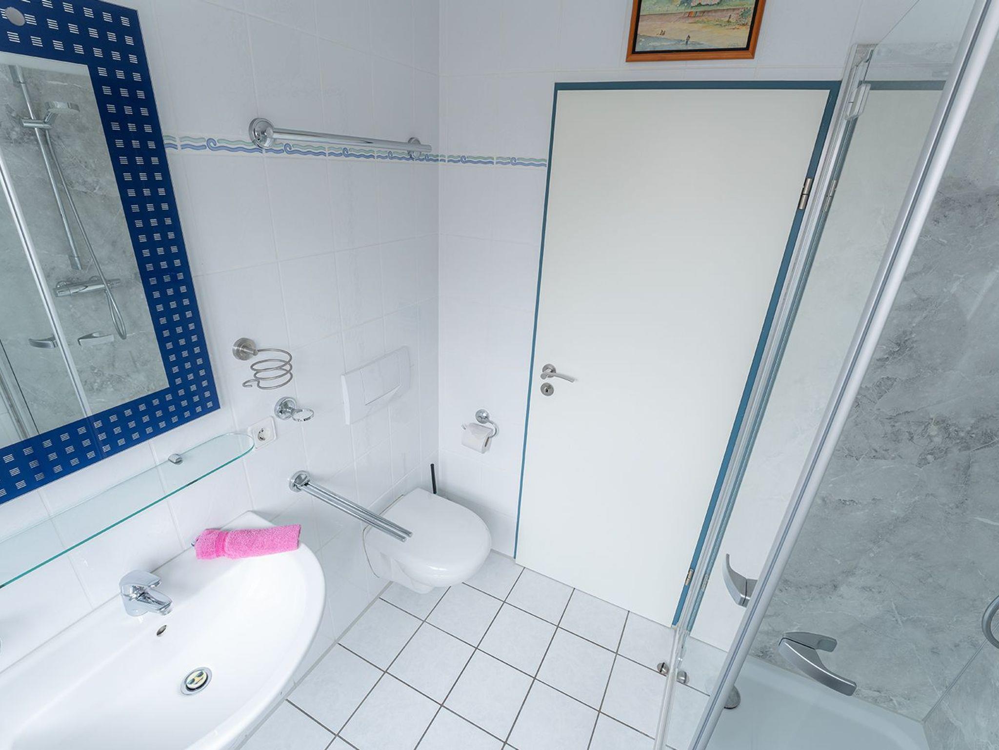 Sie betreten diese freundliche Ferienwohnung im Erdgeschoss durch eine geräumige Diele. Rechts gelegen das helle Fenster-Duschbad mit Waschmaschine. Eine separate Küche bietet Ihnen eine komplette Grundausstattung. Geradeaus geht es in den mediterran sonnig gestalteten Wohn-/Essbereich mit Flachbild-TV, DVD-Recorder und einer Auswahl an DVDs, Büchern und Spielen. Der Schlafraum hat Teppichboden und bietet ein bequemes Doppelbett in den Maßen 160x200 mit Kleiderschrank zusätzlichem Fernseher. Eine weitere Schlafgelegenheit für zwei Personen haben Sie auf dem ausziehbaren Sofa im Wohnzimmer. Entspannen Sie in der Ferienwohnung auf der Südterrasse mit Grillmöglichkeit. Die Terrasse und das Grundstück sind eingegrünt und nicht einsehbar.