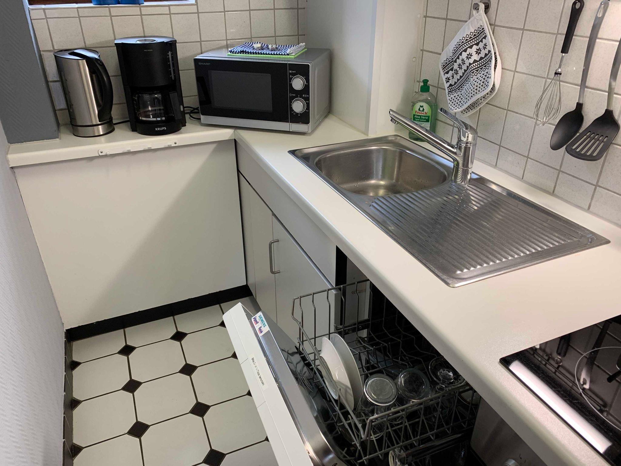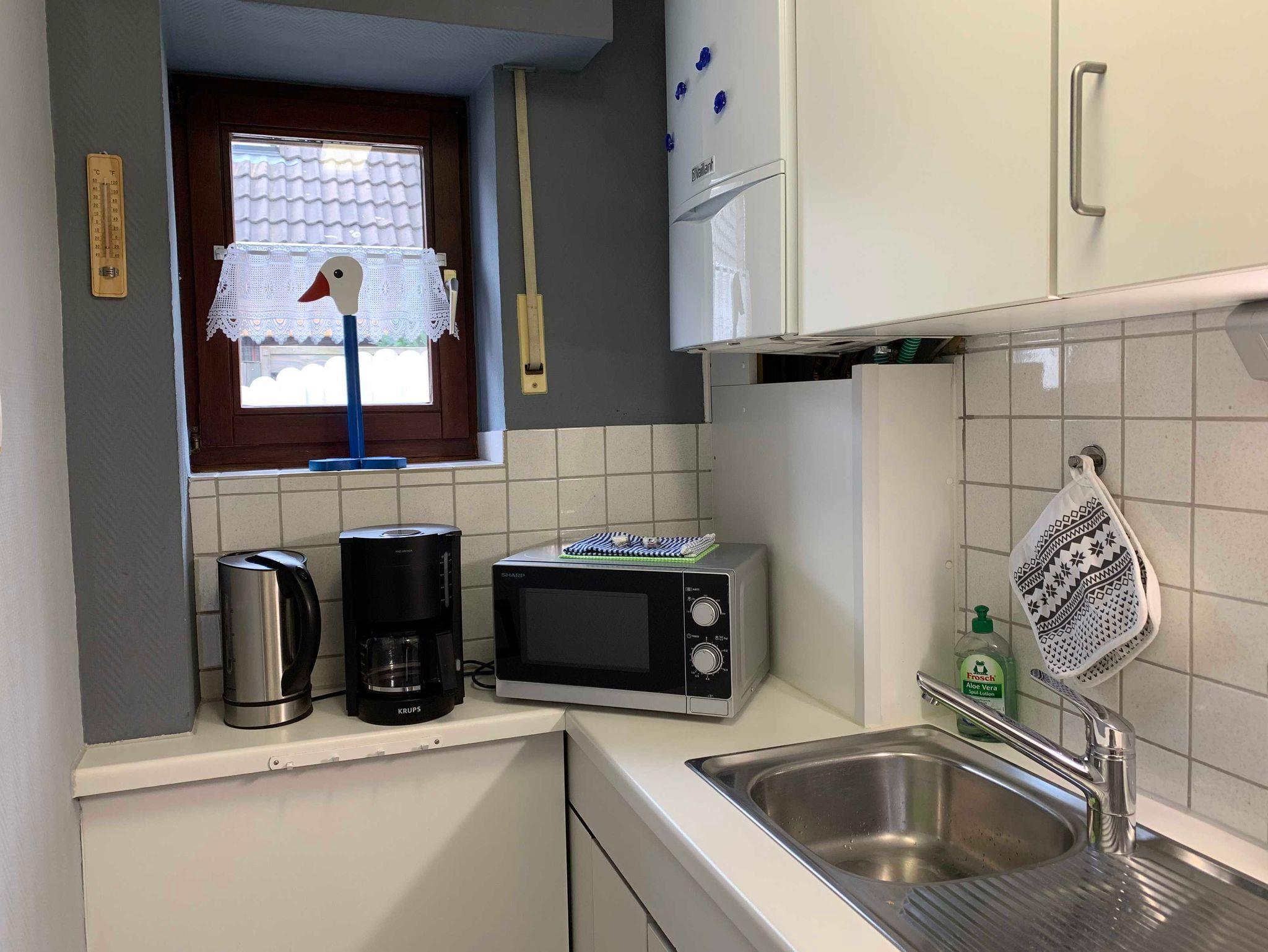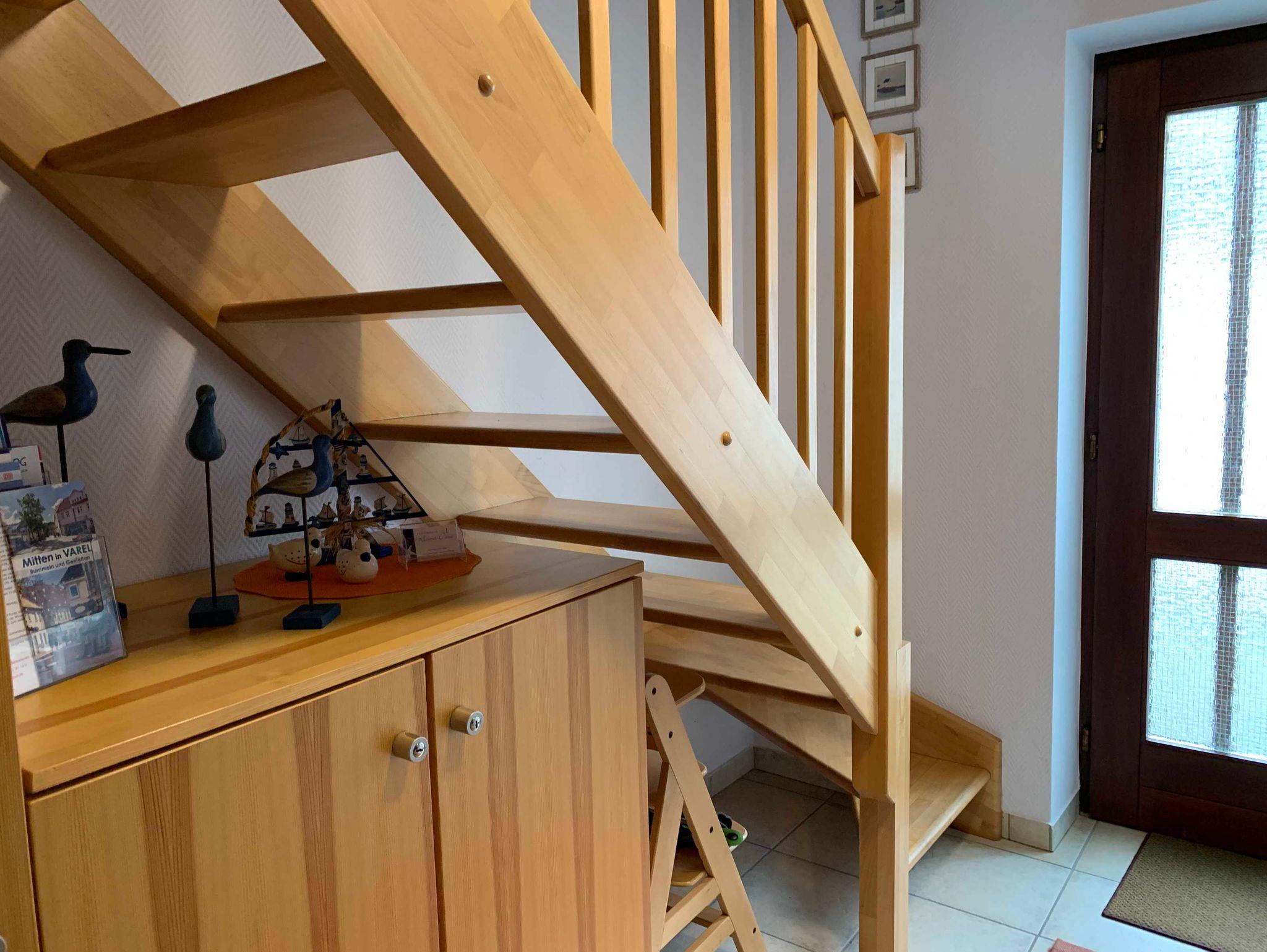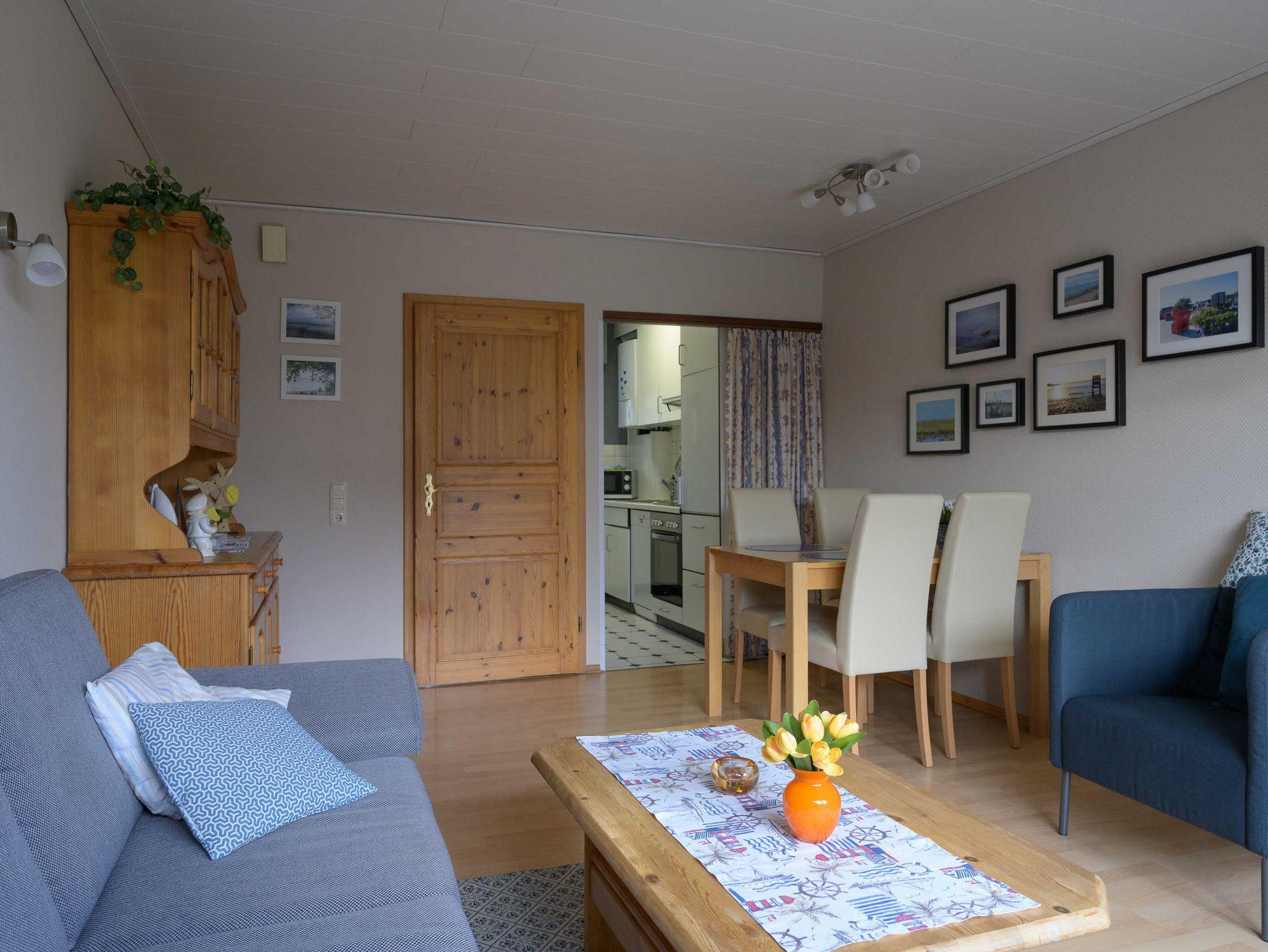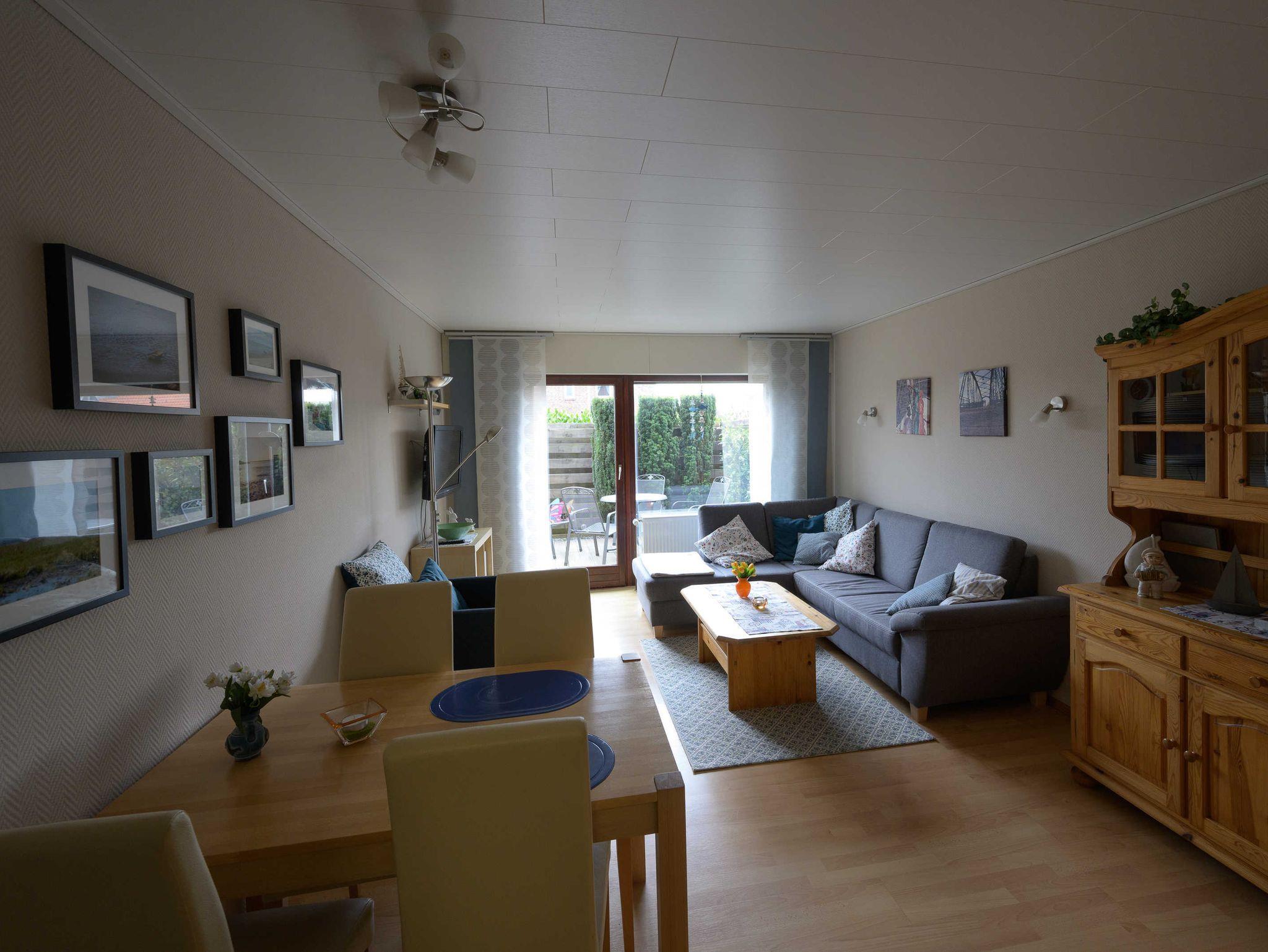 Im Erdgeschoss befindet sich das großzügige, kombinierte Wohn- und Esszimmer, welches insbesondere durch seine gemütliche Einrichtung und die vielen maritimen Details für eine besondere Wohlfühl-Atmosphäre sorgt. Daran angeschlossen befinden sich die vollständig ausgestattete Küchenzeile sowie die windgeschützte Südterrasse.