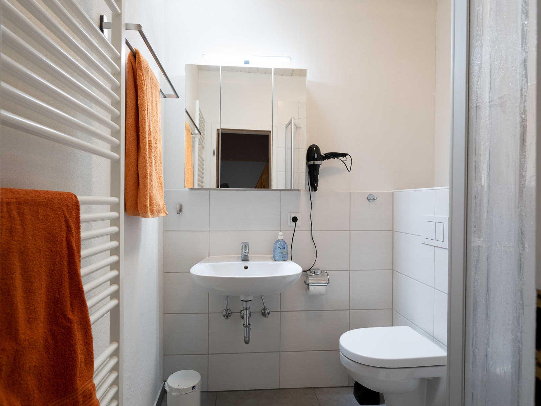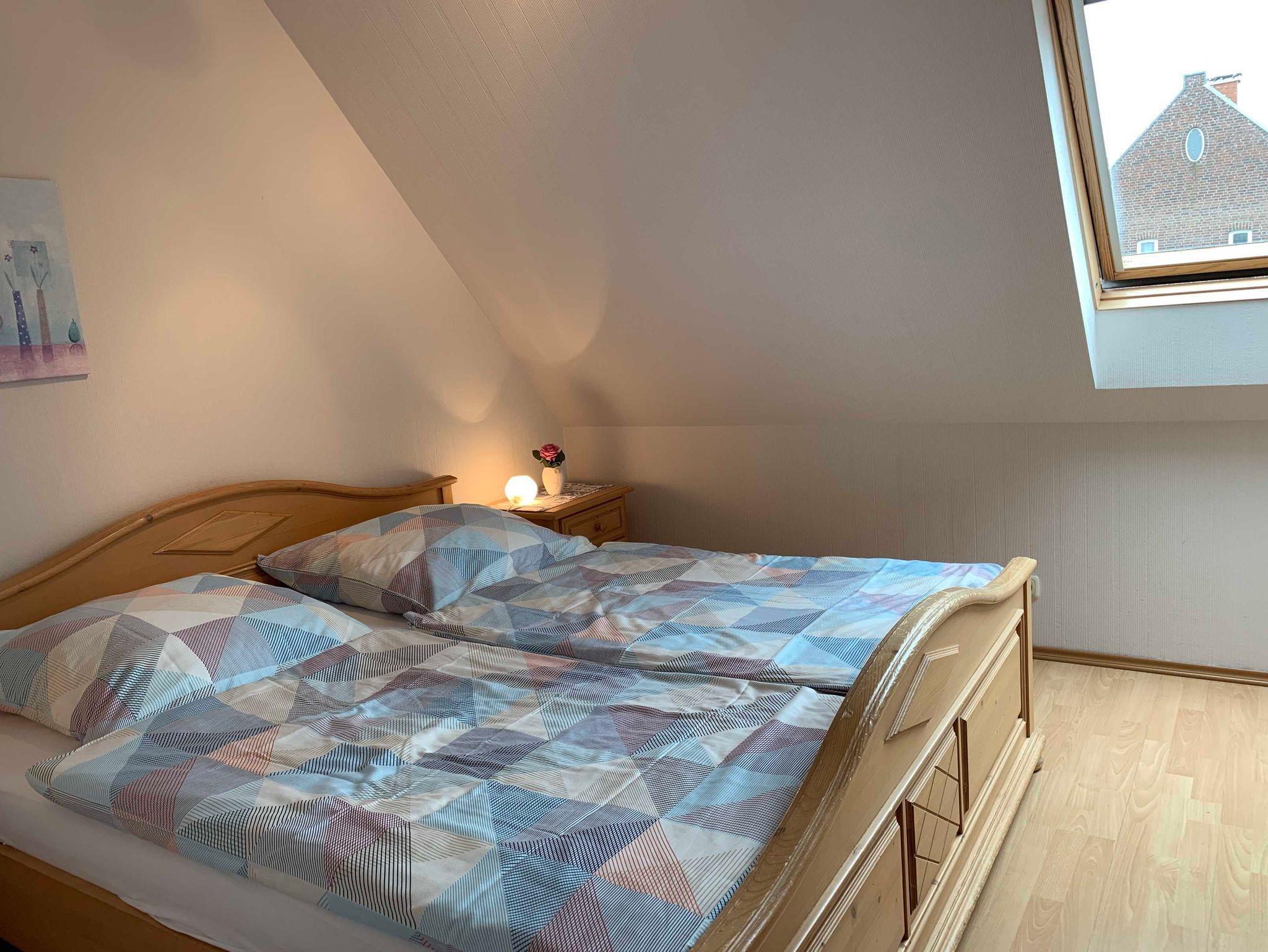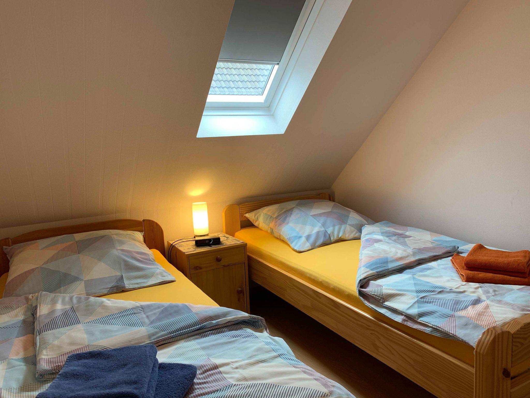 Das Obergeschoss besteht aus dem Elternschlafzimmer mit Doppelbett, einem Kinderzimmer mit zwei Einzelbetten sowie dem hell und modern eingerichteten Bad.