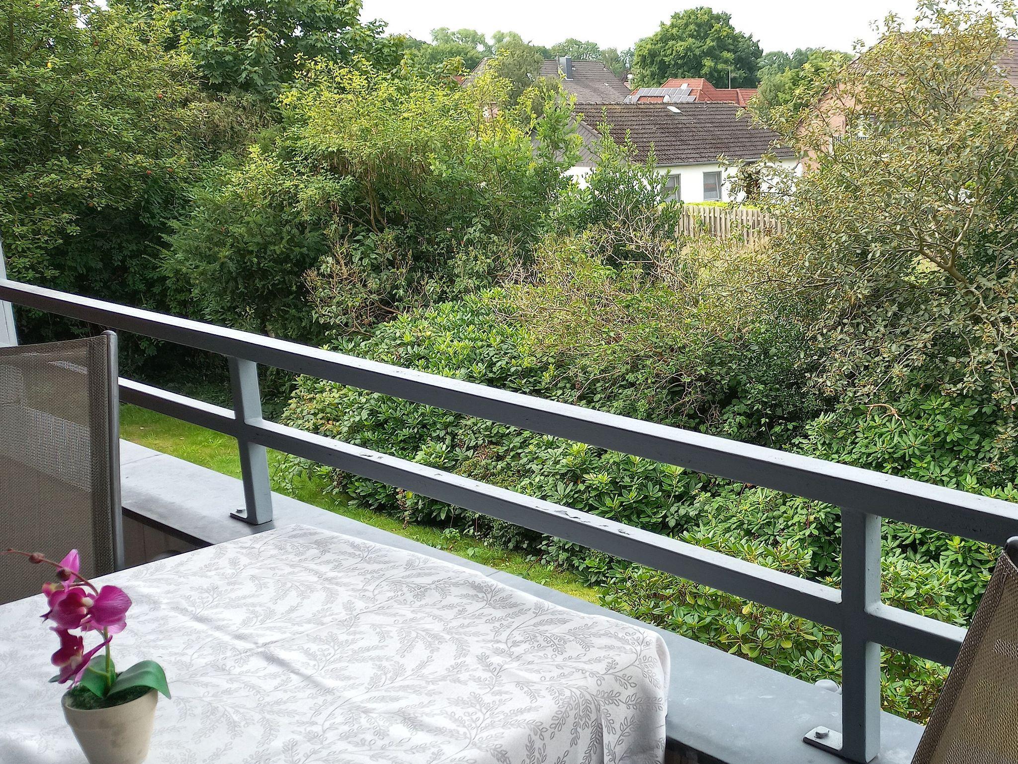 Balkon mit Blick in den Garten.
