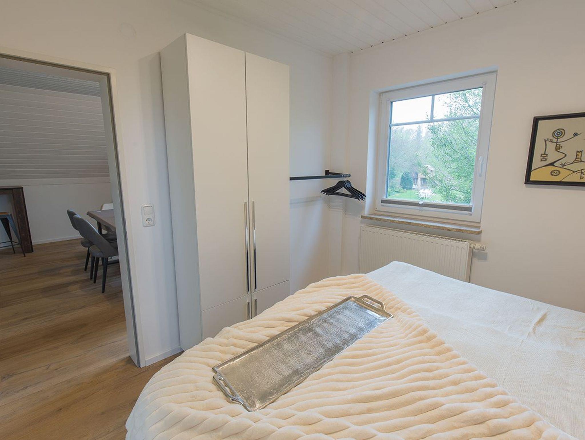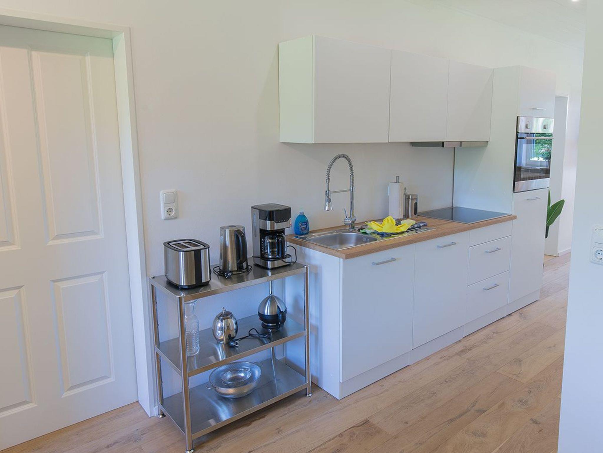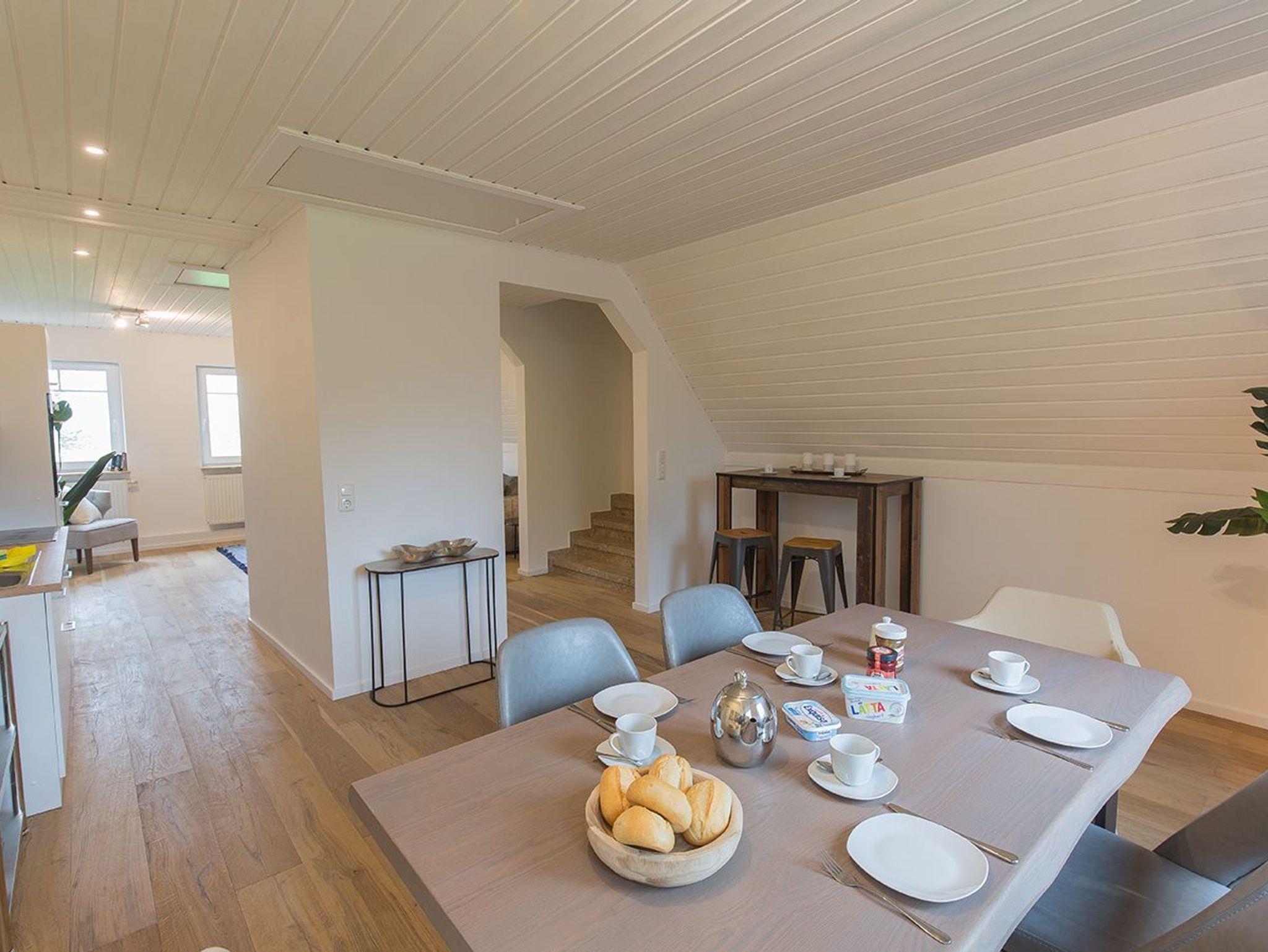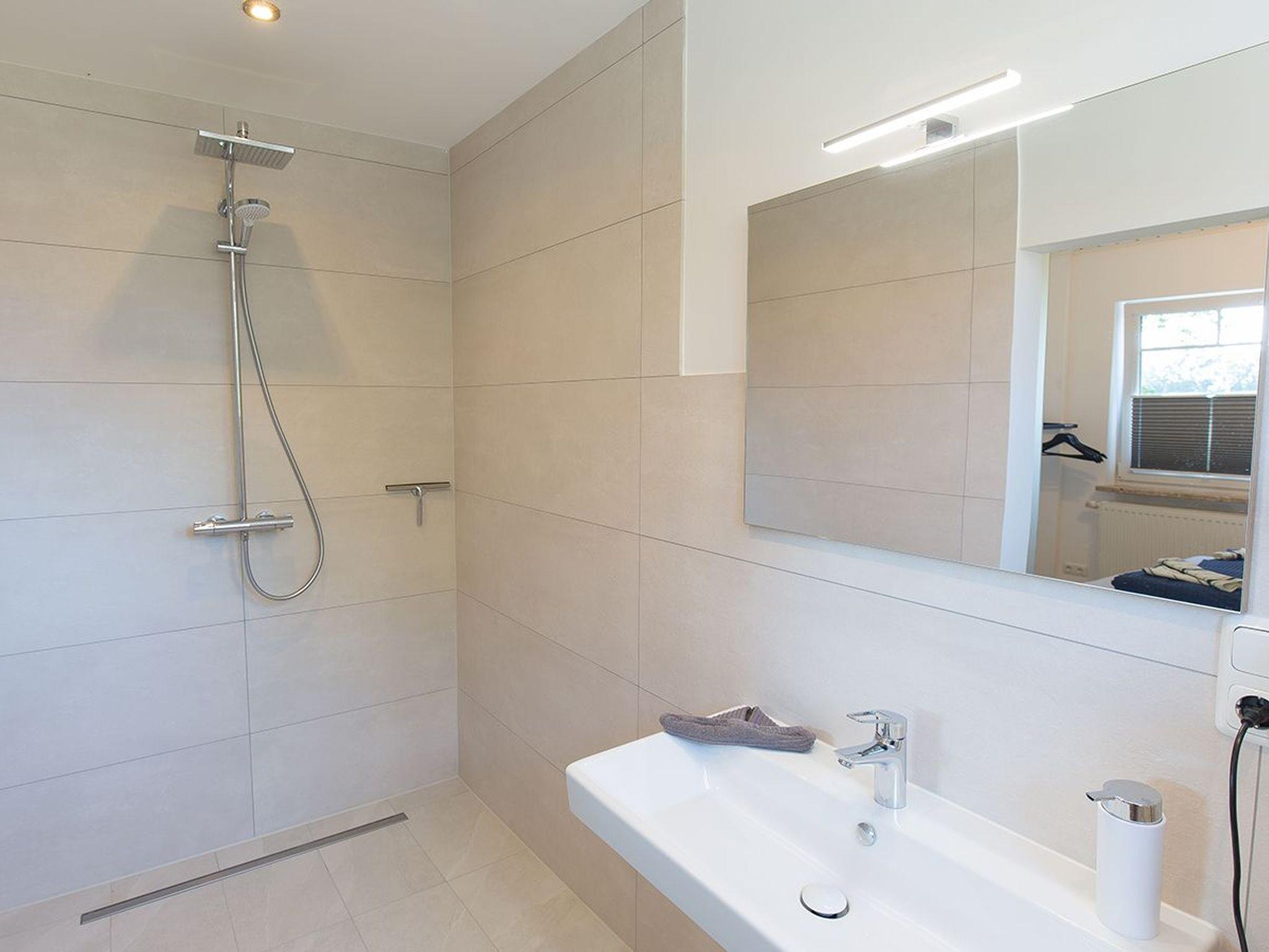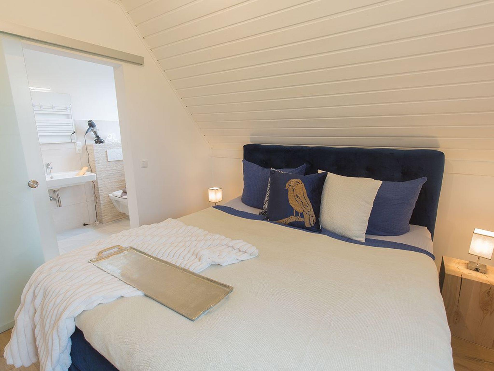 Moin und herzlich Willkommen in unserer Ferienwohnung Fresenhuus 3 im ersten OG rechts. Ihr PKW-Stellplatz liegt unmittelbar vor der Anlage. Im gesamten Objekt wurde Echtholz-Eichenparkett verlegt. Drei Stufen führen Sie zunächst in die Diele mit Garderobe und Ablagefläche und dann in den offenen Wohn/-Essbereich. Nach links gelangen Sie zum großen Esstisch mit angrenzender offener Küchenzeile. Der Blick nach draußen ist unverbaubar auf Felder und Wiesen. Rechts befindet sich das große Sofa mit Recamiere und Schlaffunktion, ein Sessel und ein wandhängender Flachbild-TV. Vom Wohnzimmer und dem Esszimmer führt Sie eine Tür zu den beiden Schlafräumen; komfortabel ausgestattet mit zwei großen Doppel-Boxspringbetten und Platz für Kleidung. Von jedem Schlafzimmer aus gelangen Sie in ein eigenes modernes Duschbad mit Fußbodenheizung und ebenerdiger Walk-In-Regendusche. Genießen Sie den tollen Garten, die unverbaute Aussicht auf Felder und Wiesen Richtung Deich sowie die finnische Panoramasauna.