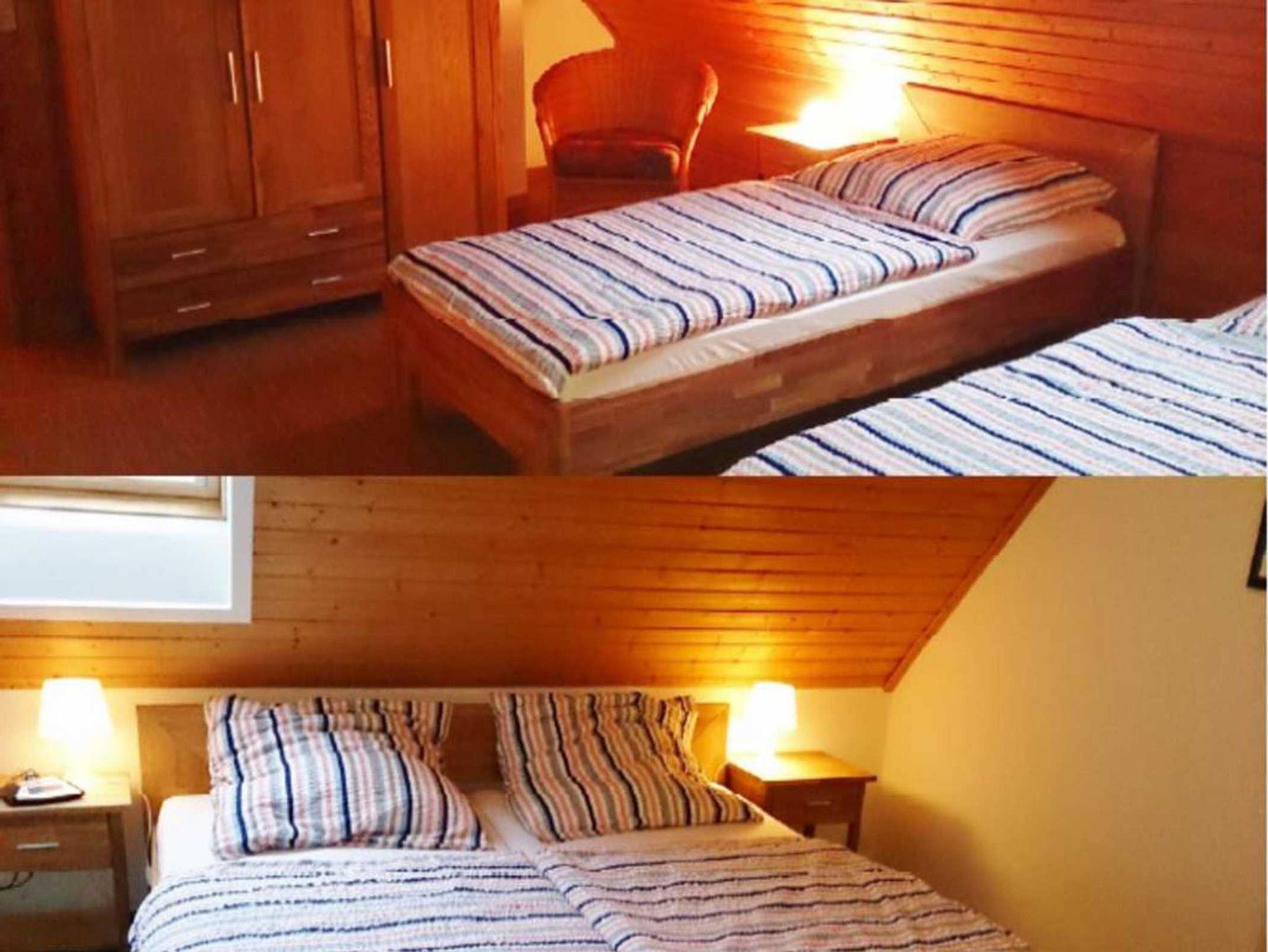 Das voll ausgestattete Ferienhaus besitzt 4 Schlafräume auf 2 Etagen. Ein Wohnzimmer mit Kaminofen. Für kühle Abende steht Holz kostenlos auf der Terrasse zur Verfügung. Eine separate große Küche mit Spülmaschine, Mikrowelle und separatem Gefrierfach. Es gibt ein Bad mit WC und Waschmaschine und ein sep. WC. . Ein Grill steht unseren Gästen ebenfalls zur Verfügung. Bei Belegung durch mindestens zwei Erwachsene sind Kinder unter 2 Jahren kostenfrei. Die Kinderbetten können sowohl im Schlafzimmer mit dem Doppelbett als auch im Schlafzimmer im Dachgeschoss aufgestellt werden.