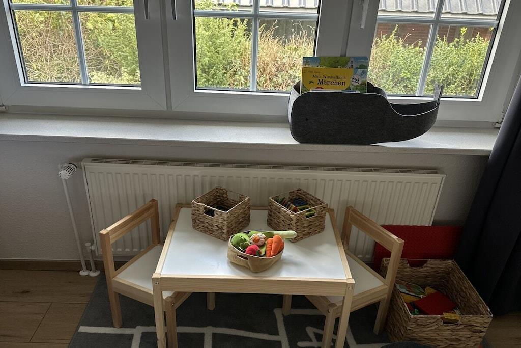 PERFEKT PLACERING!!! Alt er inkluderet i feriehuset Maila! Alle priser inkluderer sengelinned (sengene er redte), håndklæder, badehåndklæder, gratis parkering, brug af vaskemaskine, brug af opvaskemaskine, høje stole til børn, energi, WiFi og meget mere. Et nyrenoveret feriehus af høj kvalitet med en lille indhegnet have med sandkasse til børn, lige i kunstnerlandsbyen Dangast! 150 meter fra stranden! Interiøret i høj kvalitet omfatter åben opholds- og spisestue, to soveværelser med smart-tv, badeværelse med bruser, gæstetoilet og selvfølgelig et veludstyret køkken med fuldautomatisk kaffemaskine. Udendørsområdet byder på en stor terrasse med fortelt og siddepladser, liggestole og sandkasse.
