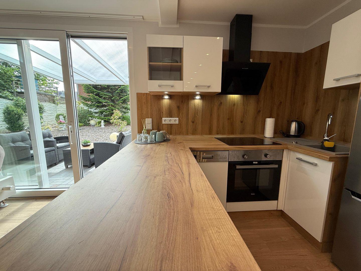 Ein besonderes Highlight ist die überdachte Terrasse mit Gartenblick, mit hochwertigen Gartenmöbeln ausgestattet. Sie haben direkten Zugang zum Garten, der ein zusätzliches Maß an Sicherheit und Privatsphäre bietet. Der private Parkplatz auf dem Grundstück ermöglicht eine bequeme Anreise und einen sorglosen Aufenthalt ohne Parkplatzsuche.