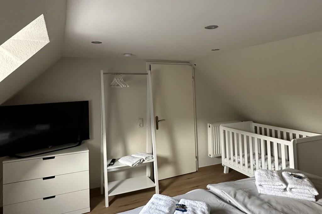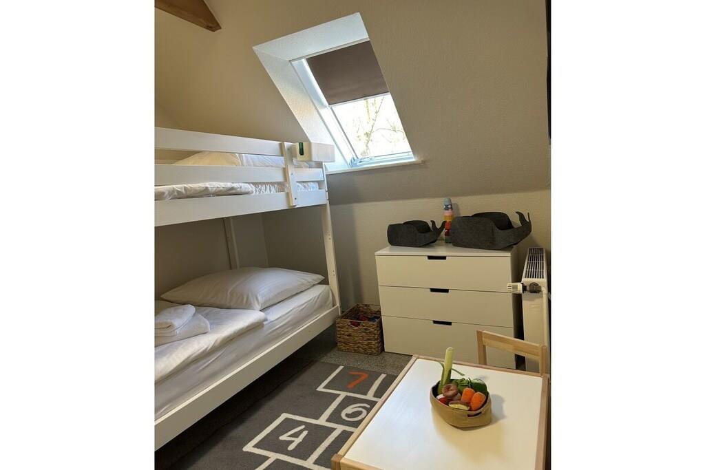 Ground floor: (hallway, Kitchen(hob, electric kettle, toaster, coffee machine, oven, microwave, dishwasher, fridge, freezer, insect screens), Living/diningroom(single sofa bed, TV, dining table, high chair, toys, insect screens), toilet(washbasin, toilet, insect screens, Towels incl.), storage(iron, drying cabinet)) On the 1st floor: (bedroom(double bed, TV, children's bed, insect screens), bedroom(single loft bed, single loft bed, party games, toys), bedroom(double bed, TV, children's bed), bathroom(shower, washbasin, toilet, washing machine, hairdryer, insect screens, Towels incl.)) terrace, garden, garden furniture, parasol, sand pit