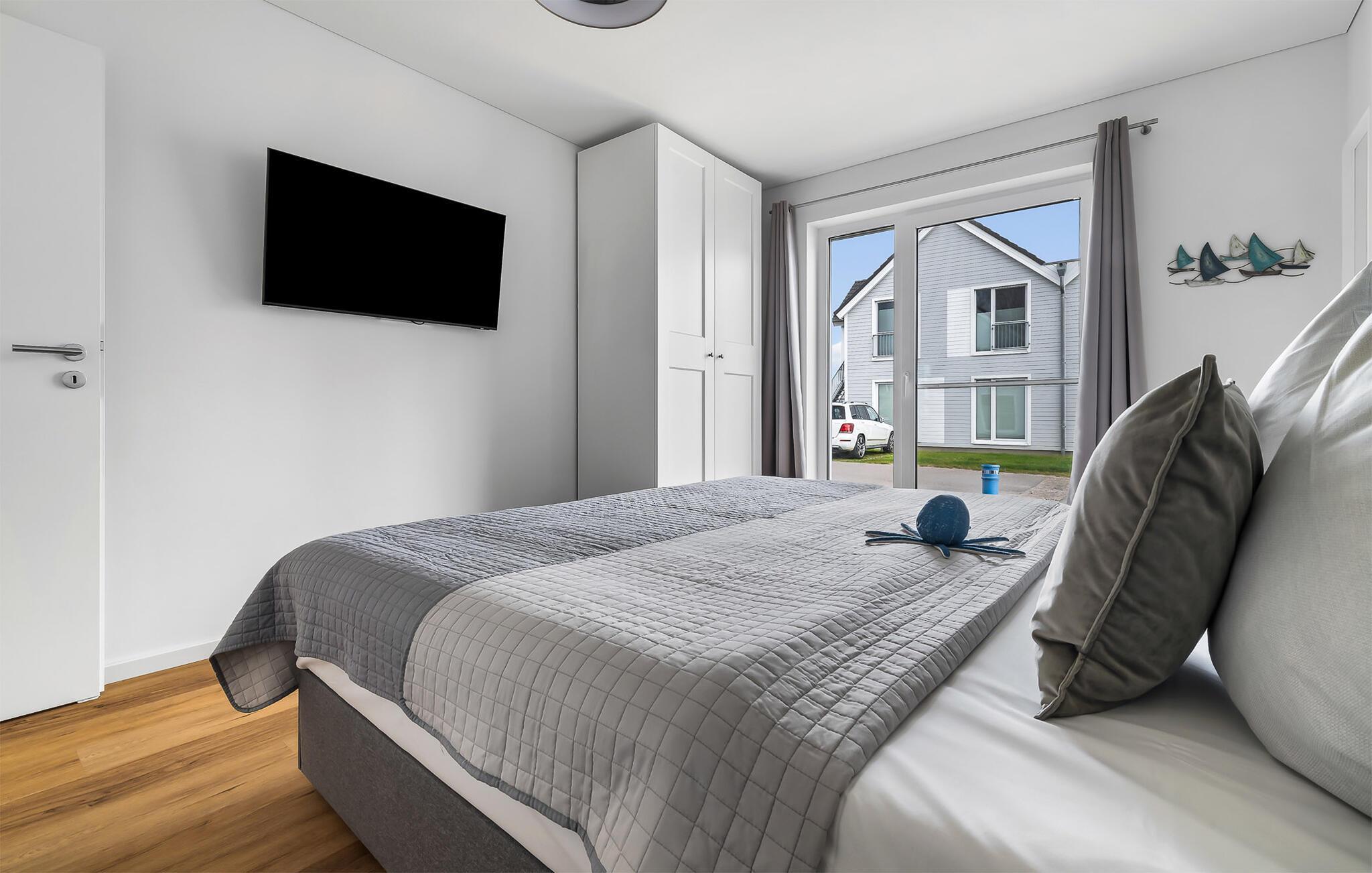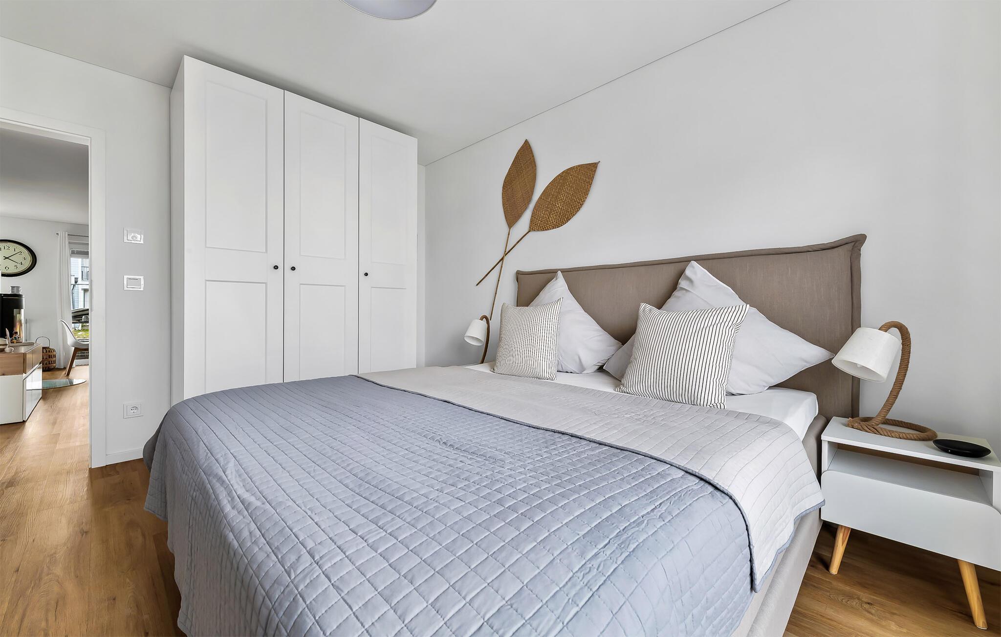 In der Ferienwohnung befinden sich zwei Schlafzimmer, welche mit gemütlichen Betten und Smart TVs ausgestattet sind. In einem Schlafzimmer befindet sich ein Doppelbett, das andere verfügt über zwei Einzelbetten, die auf Wunsch zusammengeschoben werden können. Der perfekte Ort, um einen schönen Urlaubstag ausklingen zu lassen und Kraft für den nächsten Tag zu tanken.