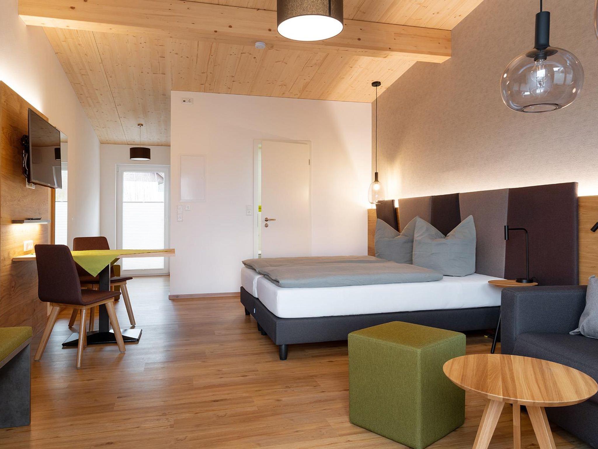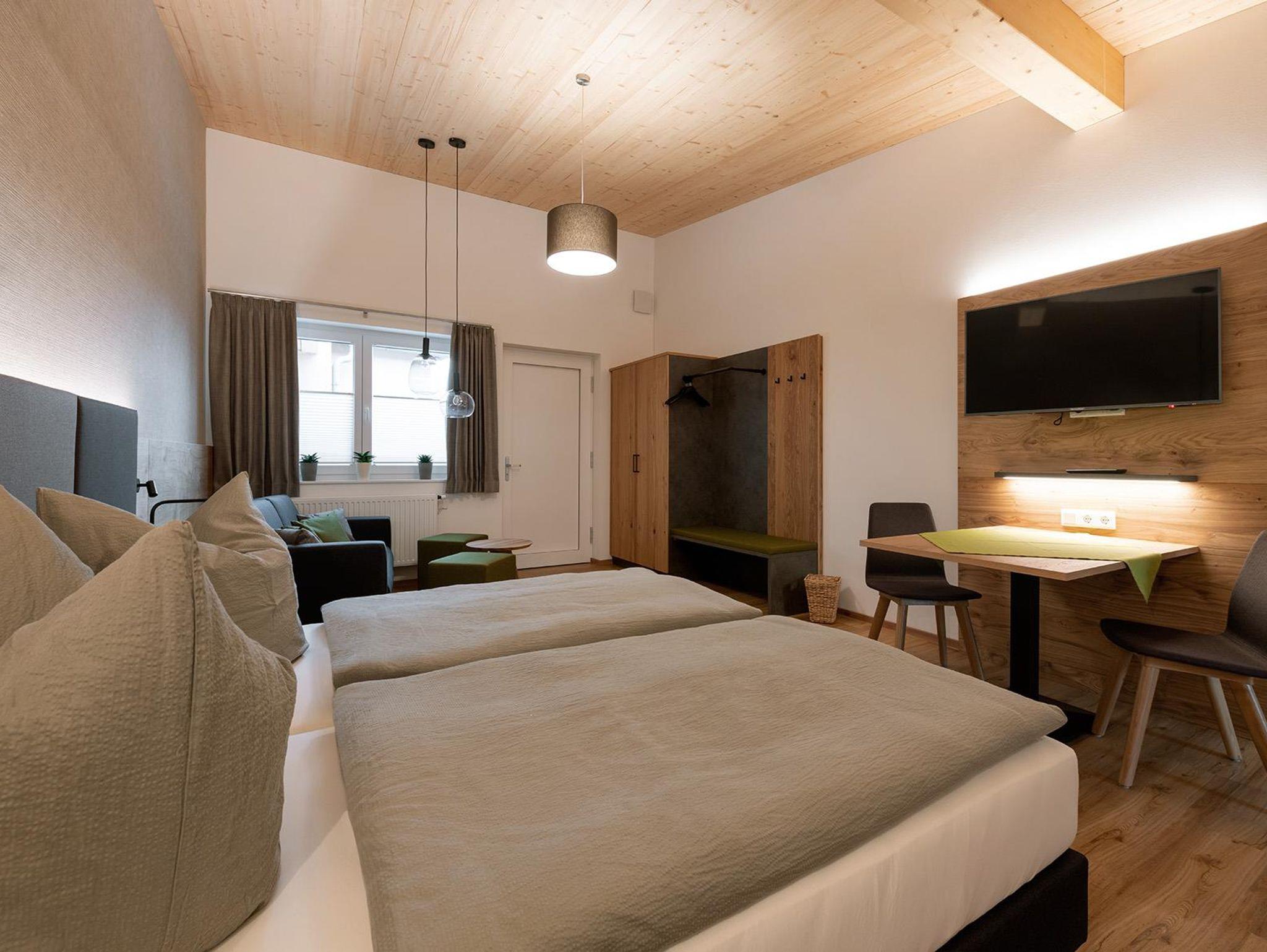 Das Appartement bietet Platz für 1-2 Personen und ist mit 2 modernen Boxspringbetten ausgestattet. Ein Sofa lädt zum entspannen ein oder bietet zusätzliche Schlafmöglichkeit für 1-2 Personen. Die Einrichtung ist eine Mischung aus rustikalem Holz und modernen Stoffen. Ein Satelietenfernsehr und die komplett ausgestattete Küche mit Kühlschrank inkl. Gefrierfach, Kochnische, Mikrowelle, Wasserkocher, Backofen und Toaster lässt keine Wünsche offen. Das geräumige Badezimmer mit bodenebener Dusche, WC und Handtüchern rundet das Gesamtbild ab. Das WLAN können Sie kostenfrei nutzen.