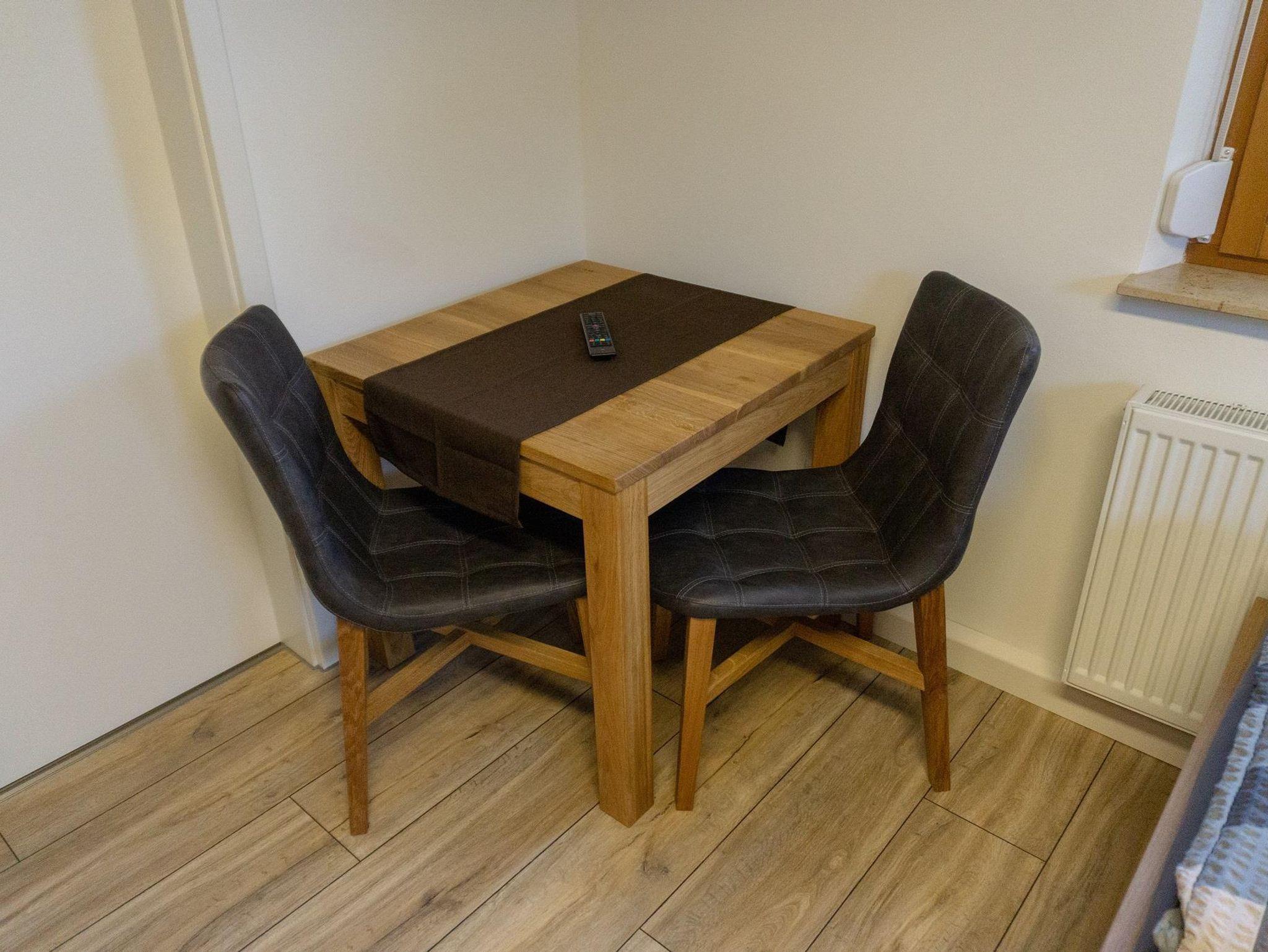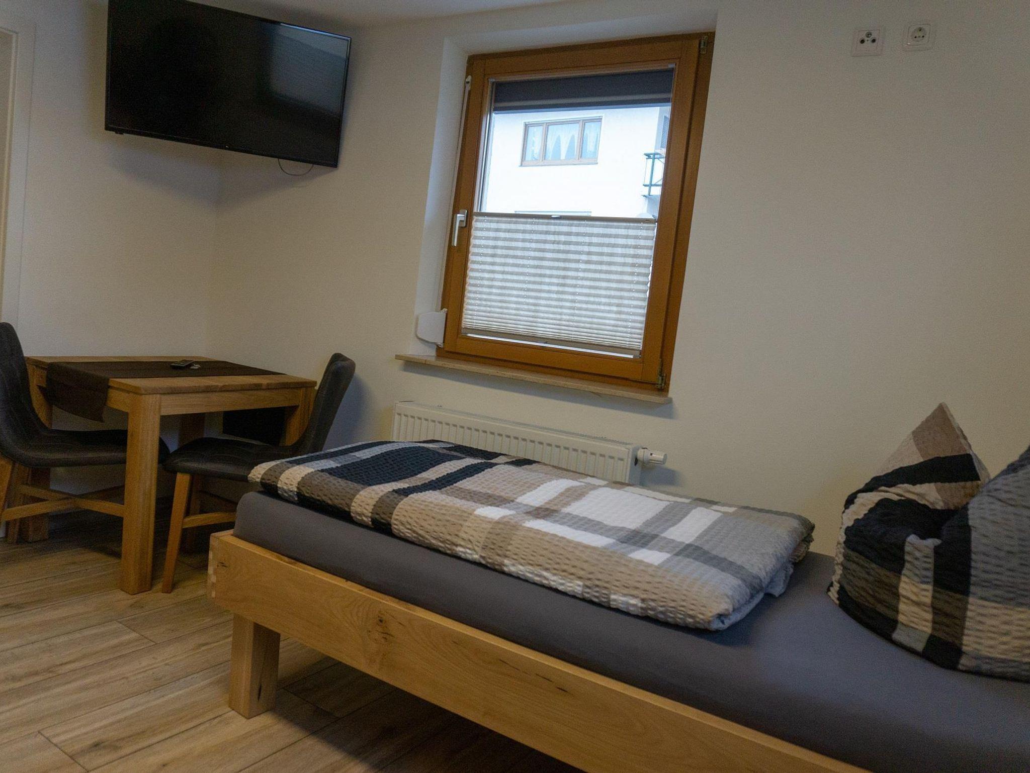 Das moderne Appartement bietet Platz für 1-2 Personen und ist mit 2 Einzelbetten aus rustikalem Holz und einem Fernseher eingerichtet. Die komplett ausgestattete Küche mit Kühlschrank inkl. Gefrierfach, Kochnische, Mikrowelle, Wasserkocher und Toaster lässt keine Wünsche offen. Das geräumige Badezimmer mit Dusche, WC und Handtüchern rundet das Gesamtbild ab. Das WLAN können Sie kostenfrei nutzen.