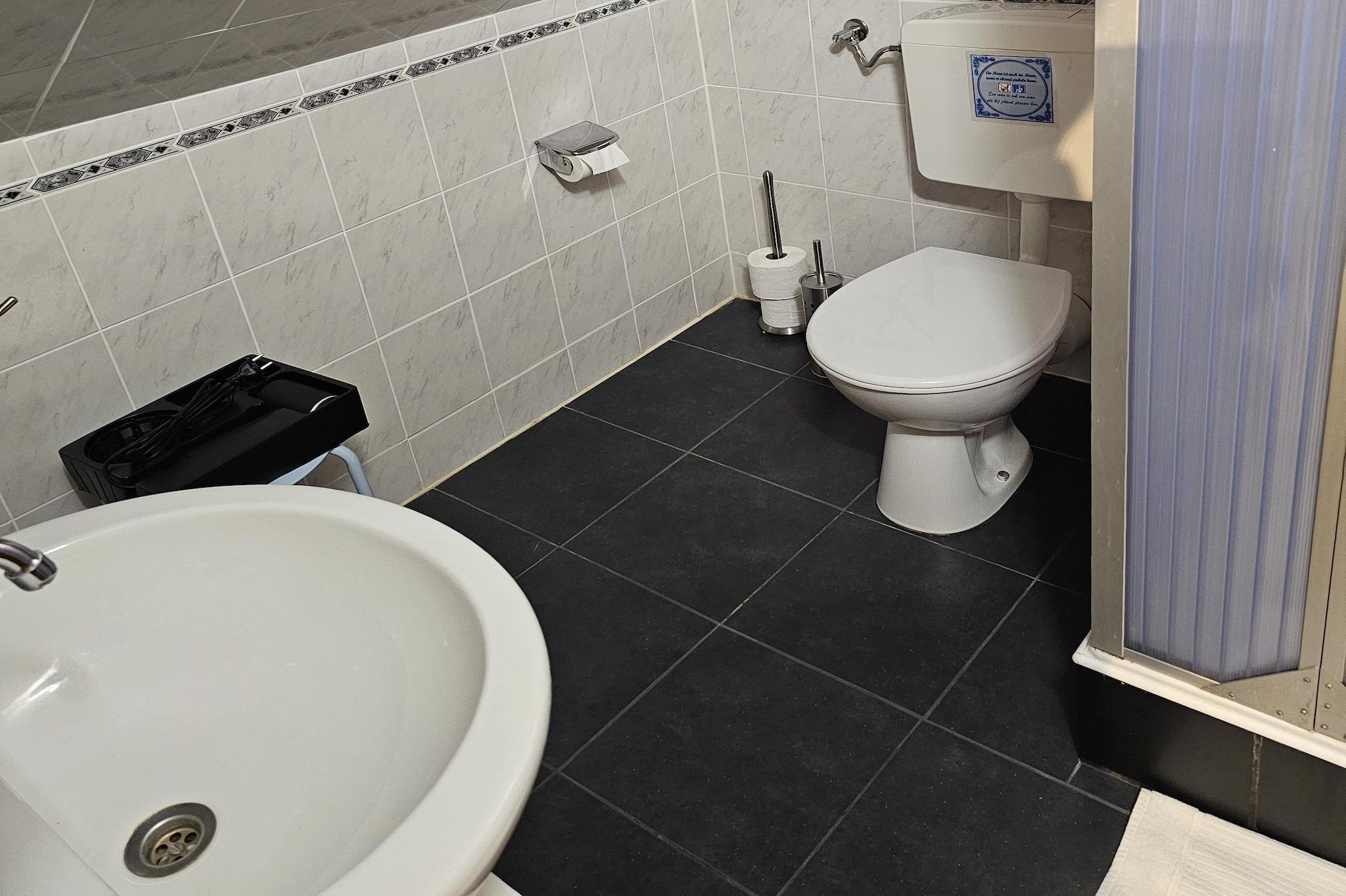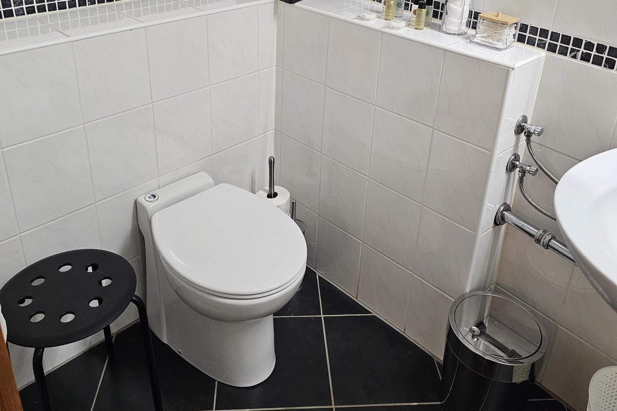 On the 2nd floor: (open kitchen(electric kettle, cooker, coffee machine, combination microwave, dishwasher, fridge), Living/diningroom(single folding bed, single folding bed, TV, dining table, seating area), bedroom(double bed), bedroom(double bed), bedroom(single bed, single bed), bathroom(shower, washbasin, toilet), bathroom(shower, washbasin, toilet), balcony, BBQ, high chair, hairdryer) parking lot(public)