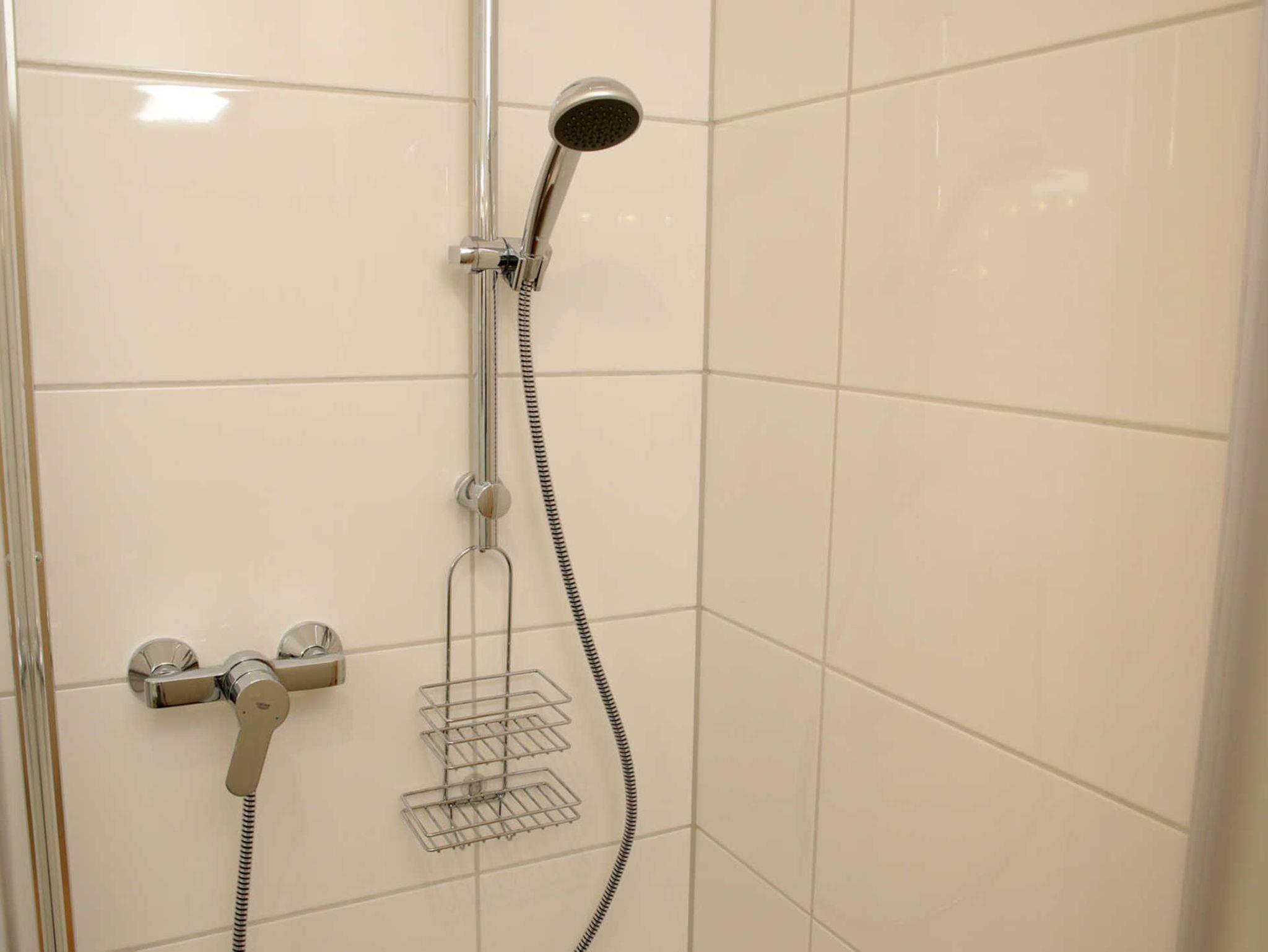 Der Koch-/Ess-Bereich wurde mit einer modernen Küchenzeile ausgestattet (u. a. mit Mikrowelle mit Grillfunktion), das Bad mit Dusche/WC und Handtuchheizung.