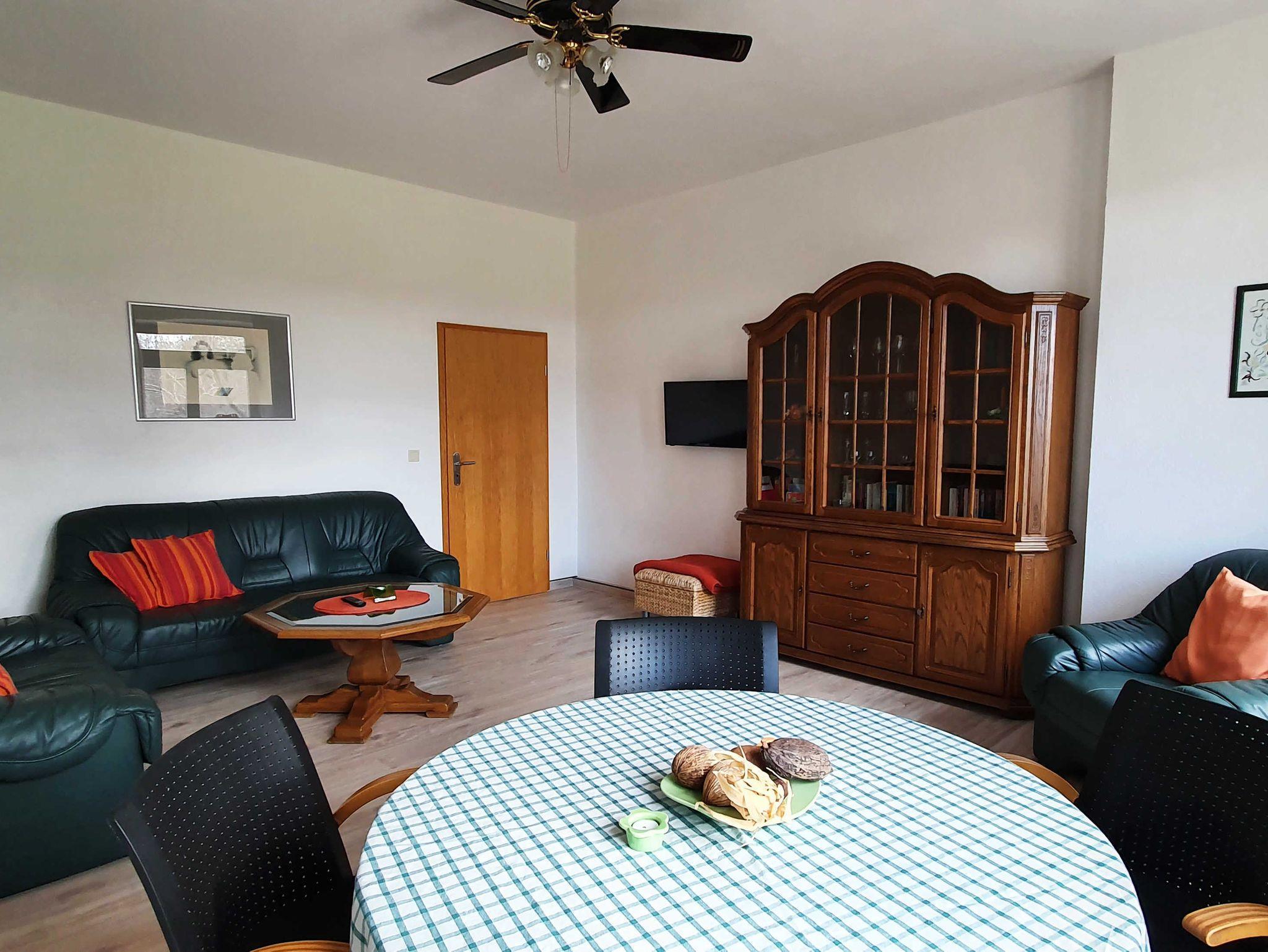 Die Ferienwohnung befindet sich im Erdgeschoss einer Doppelhaushälfte mit zwei Wohneinheiten. Das gemütliche Wohnzimmer verfügt über einen Essbereich mit gemütlicher Sitzecke und TV. Das helle und freundliche Schlafzimmer hat ein Doppelbett (160x200; getrennte Matratzen) und einen großen Kleiderschrank. Die Küche ist mit Backofen, Cerankochfeld, Mikrowelle, Filter und Senseo Kaffeemaschine, Wasserkocher, Toaster und Kühlschrank voll ausgestattet. Außerdem gibt es Bad mit Badewanne und WC.
