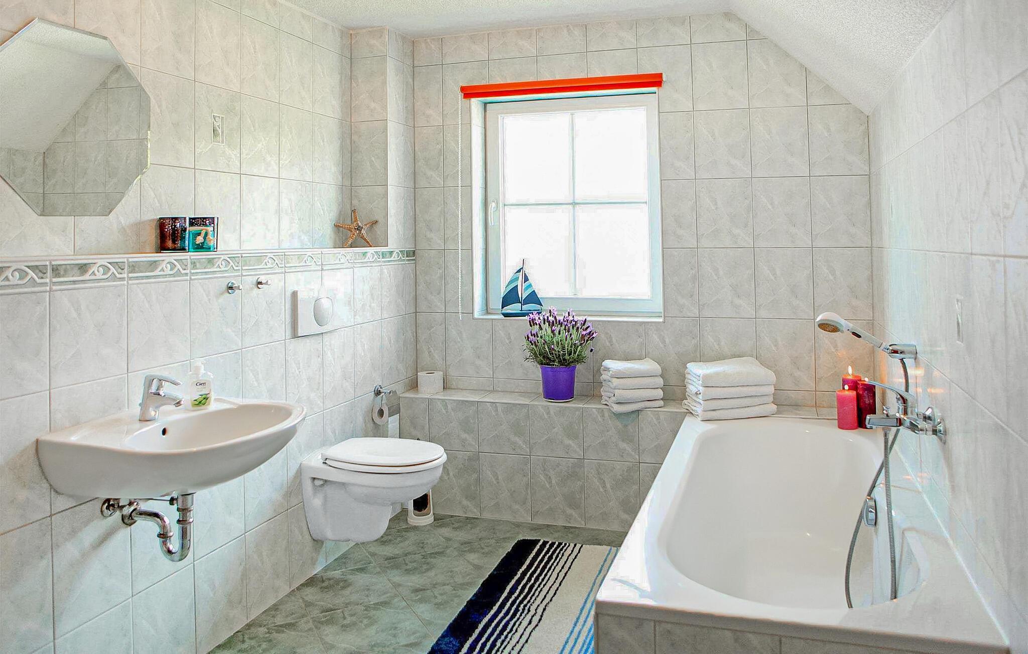 Badezimmer (nr. 1) - WC. Warmes und kaltes Wasser. Badewanne