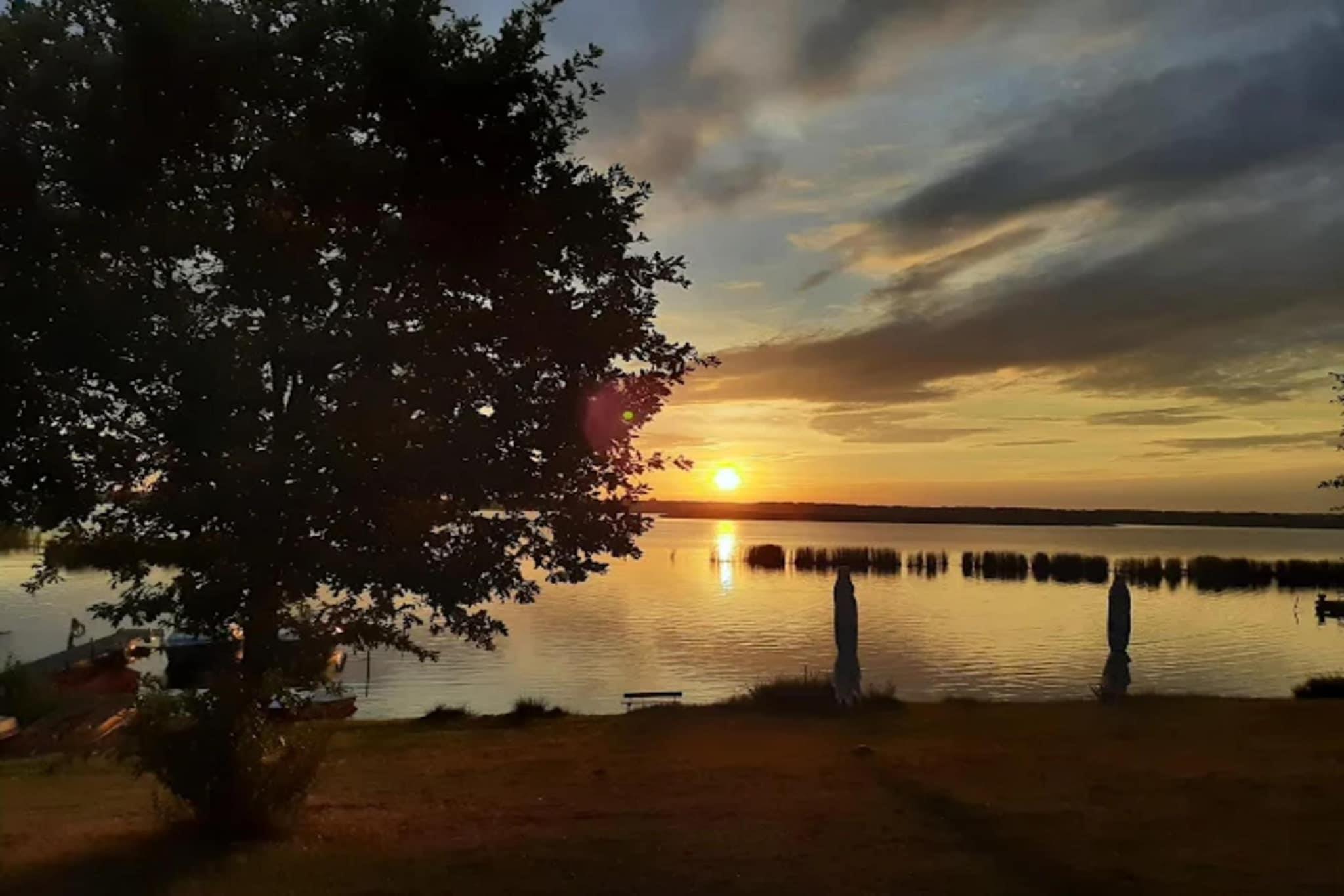 Located just 10 meters from the tranquil shores of Gräbendorfer See, this elegant ground-floor holiday home in Vetschau/Spreewald offers a relaxing lakeside experience for up to 4 guests. With two bedrooms, each featuring a double bed (160 x 200 cm), it’s ideal for couples, friends, or small families. The open-plan kitchen is equipped with a ceramic hob, mini oven, coffee machine, toaster, dishwasher, and fridge-freezer, making self-catering a breeze. The living/dining area includes a flatscreen satellite TV, radio, gas fireplace, and a dining table for cozy evenings. Enjoy a modern bathroom with shower, washbasin, and hairdryer, plus a separate toilet. Air conditioning, heating, and a laundry package are included for year-round comfort. Step outside to a private terrace, roof terrace, and garden area with sun loungers, electric barbecue, and outdoor furniture. A seasonal café is just 160 m away, and Schloss Altdöbern is nearby for cultural outings. Whether you're sunbathing at the lake beach (200 m) or exploring the Spreewald region, this home offers the perfect blend of nature and comfort.
