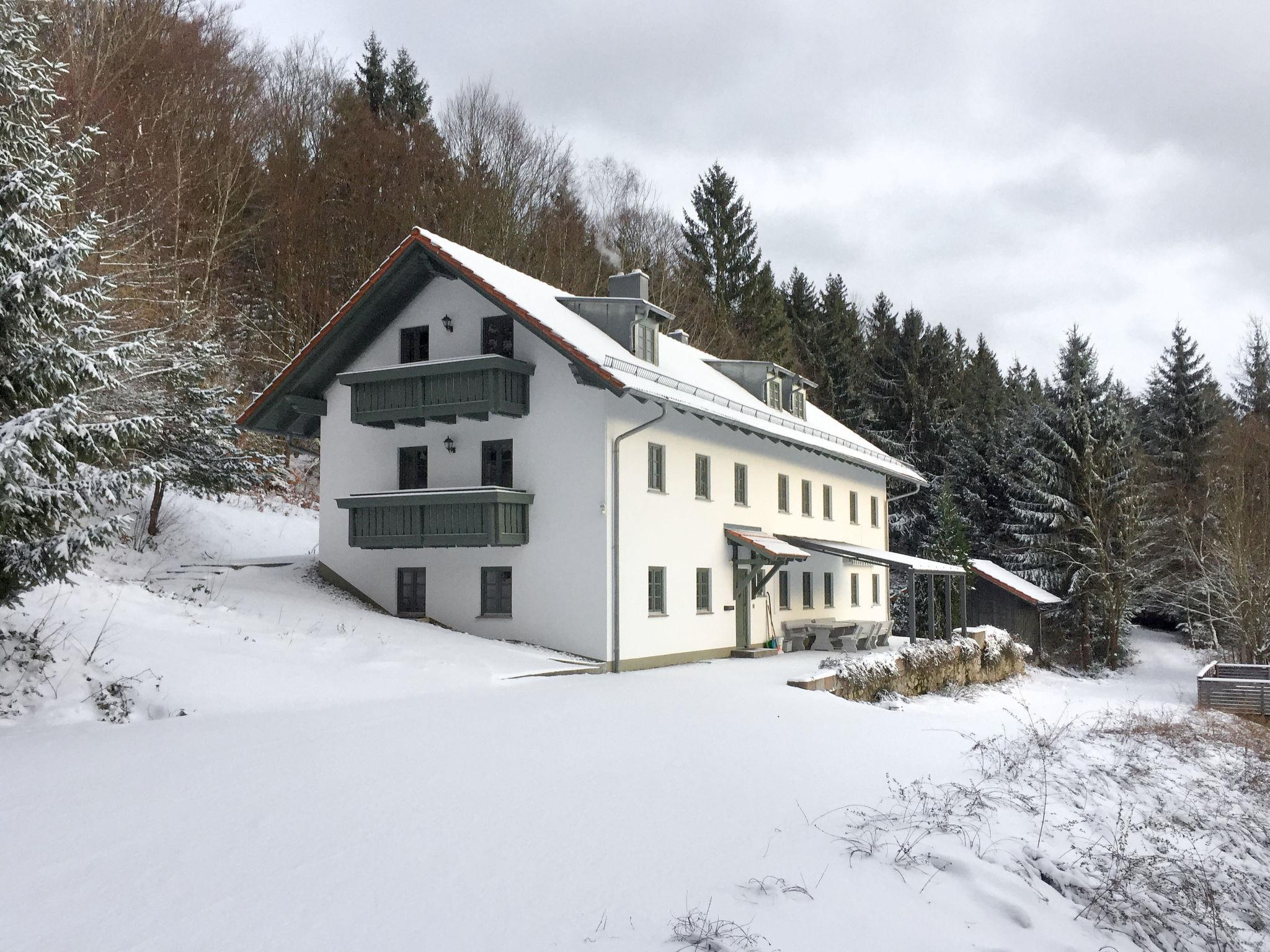 House "Kreuzbuche", detached. 4 apartments in the property. 7 km from the centre of Viechtach, 87 km from the centre of Passau, in a quiet position on a slope, along the wooded area. Private: property 5 ha, meadow, swimming pool (5 m diameter, seasonal availability: 15.May. - 15.Sep.). Barbecue, barbecue house, children's playground (slide, swing), parking on the premises. Shop 5 km, supermarket 7 km, restaurant 1 km, bakery 5 km, bus stop "Neunussberg Gasthof Brandl" 1.3 km, railway station "Viechtach" 10 km. Walking paths from the house 10 m, mountain railway 12 km, cross country ski track 2 km.