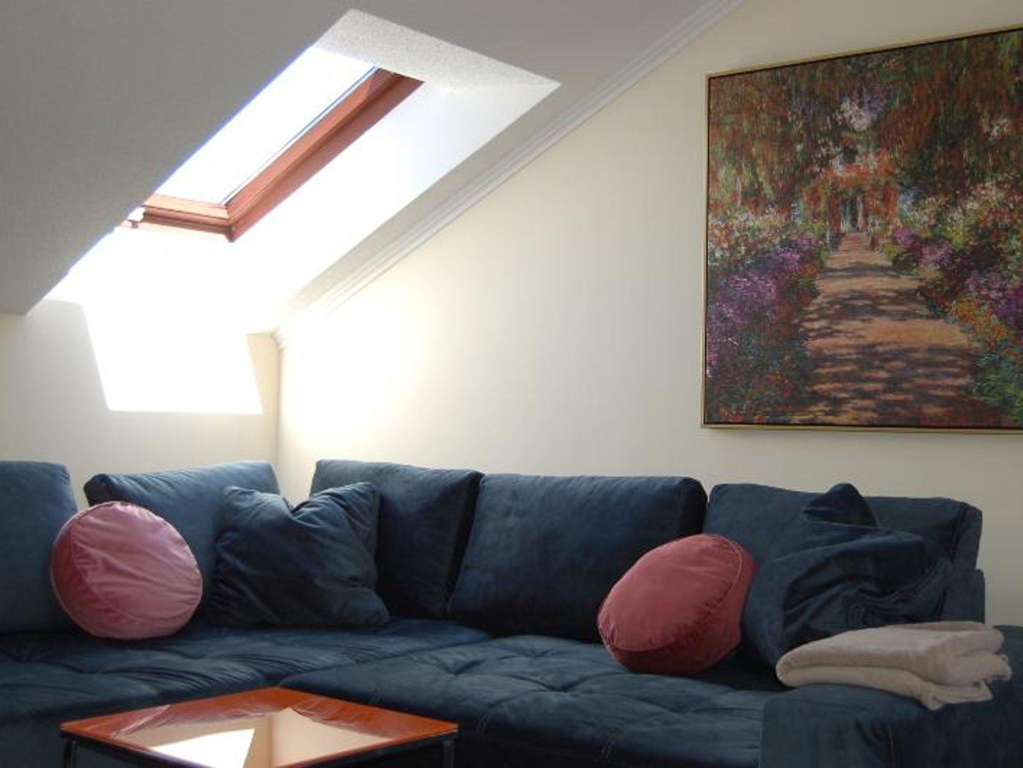 Im Wohnbereich biete ein hochwertiges Sofa reichlich Platz. Für die