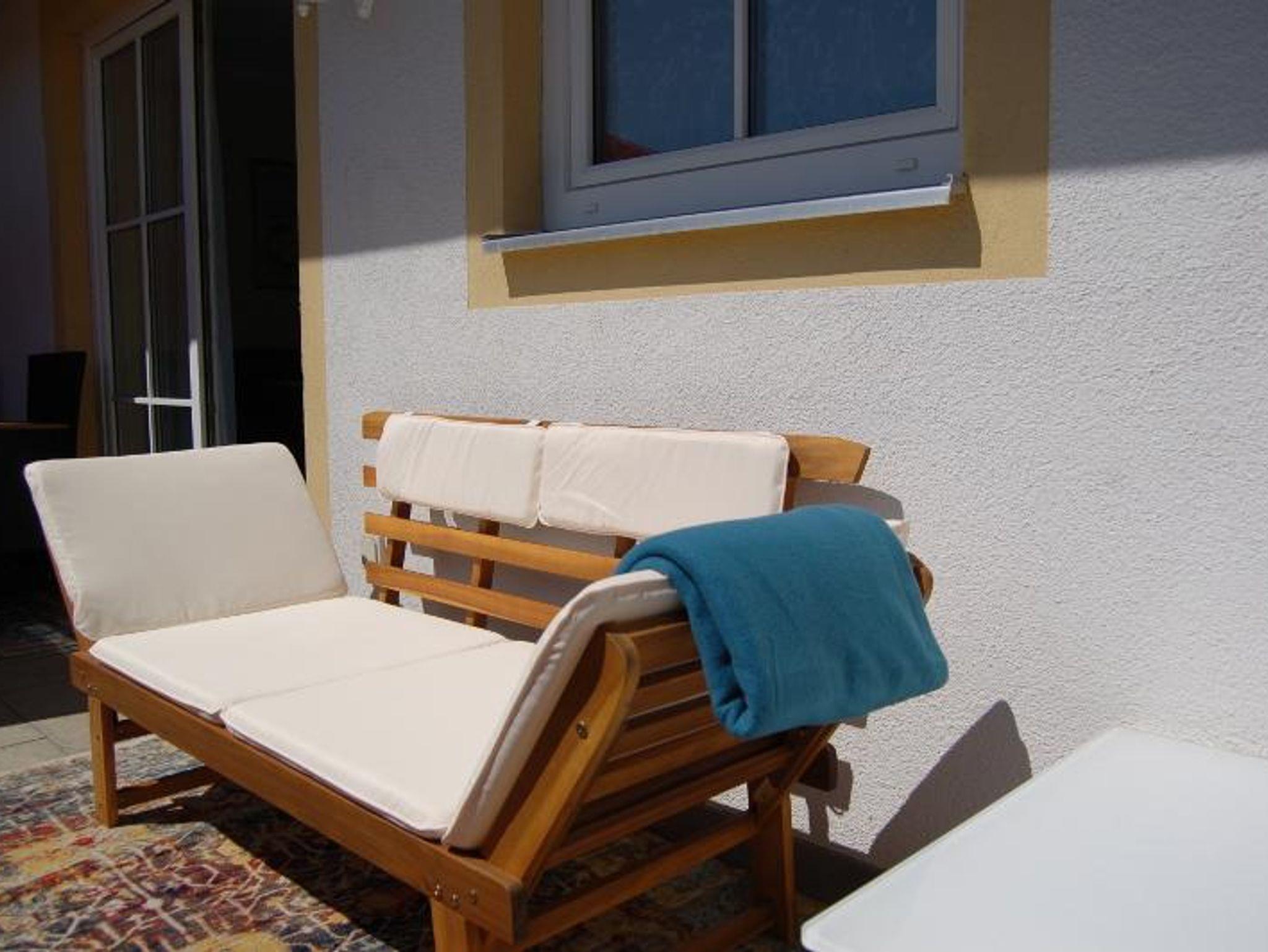 Polyrattansitzgruppe, einer zum Liegebett verwandelbaren Holzbank, 2