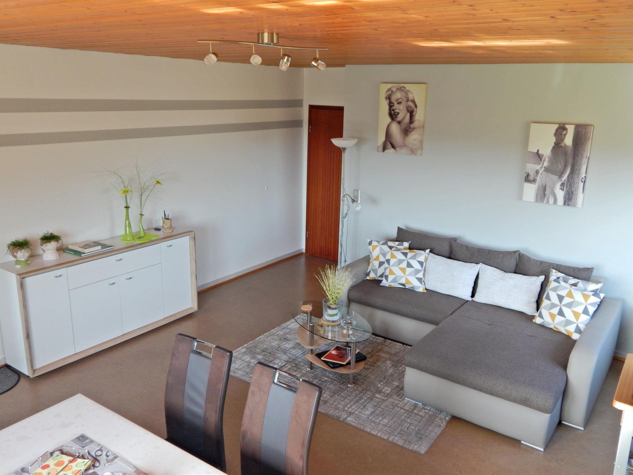 Die Ferienwohnung verfügt über 70 qm; sie ist komplett neu eingerichtet und lässt keine Wünsche offen. Zu ihr gehören: 2 Schlafzimmer, 1 Wohn- Esszimmer mit zusätzlicher Schlafcouch, eine moderne Küche, Diele, Bad mit DU/WC, Sat-TV und kostenloses WLAN. Über einen separaten Eingang erreichen Sie bequem die Wohnung im ersten Stock.