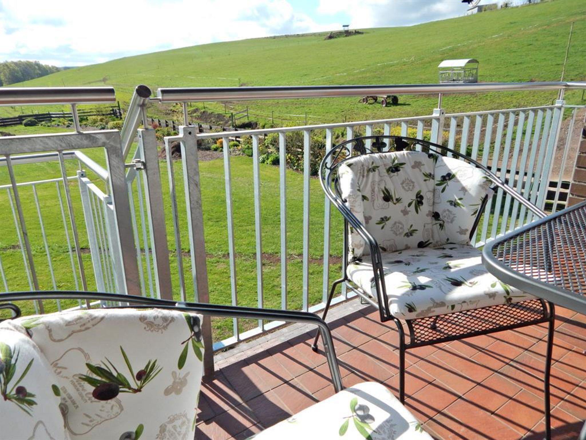 Auf dem ausschließlich von Ihnen genutztem Balkon können Sie bei schönem Wetter Ihr Frühstück oder einen gemütlichen Abend bei einem guten Glas Riesling genießen. Dabei haben Sie einen unvergleichlichen Ausblick auf die bewaldeten Höhenrücken des Schwarzwälder Hochwaldes und die angrenzenden Weideflächen. Eine Liegewiese mit angegliedertem Grillplatz sowie eine Autogarage stehen Ihnen ebenfalls zur alleinigen Nutzung zur Verfügung.
