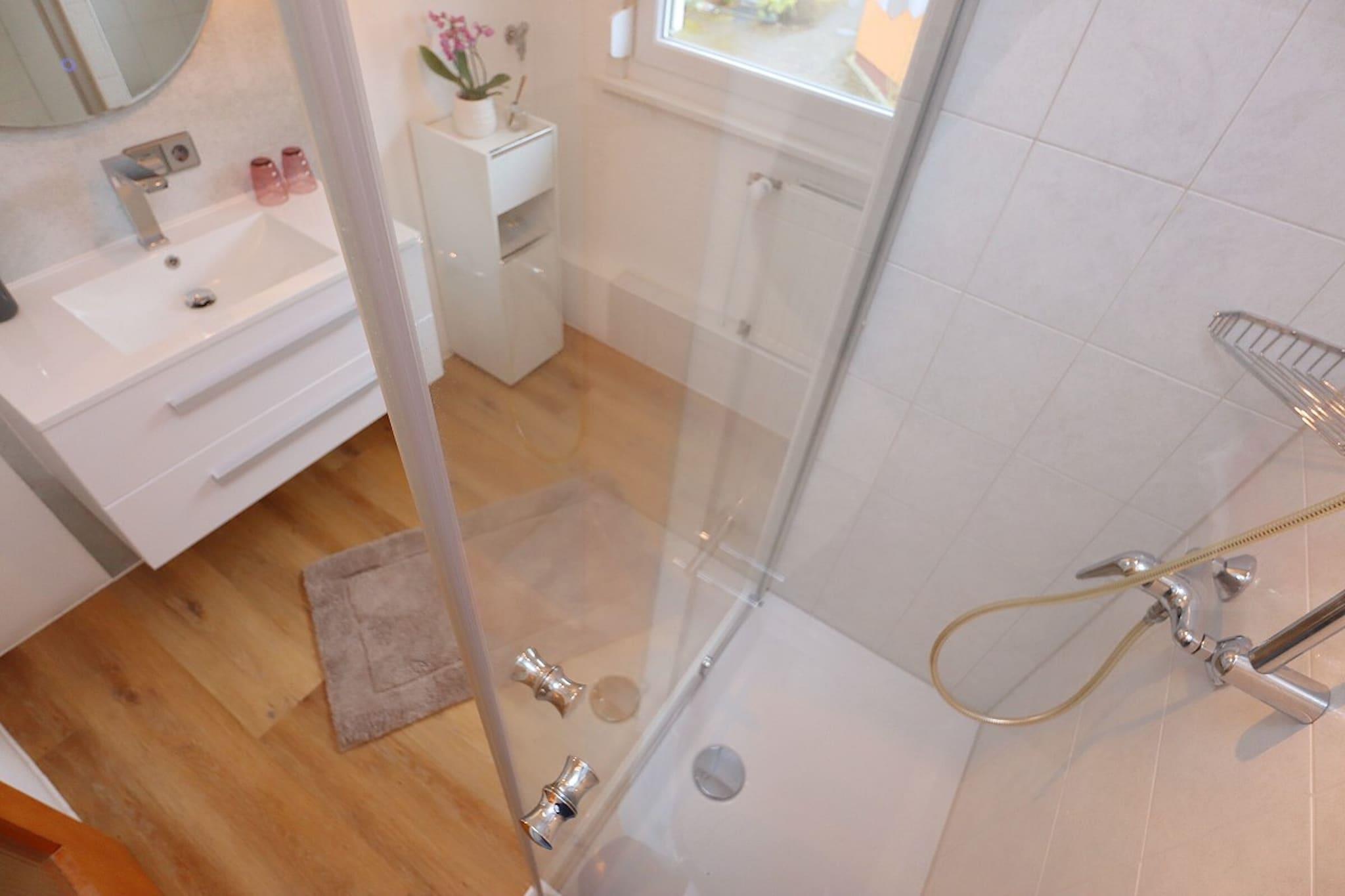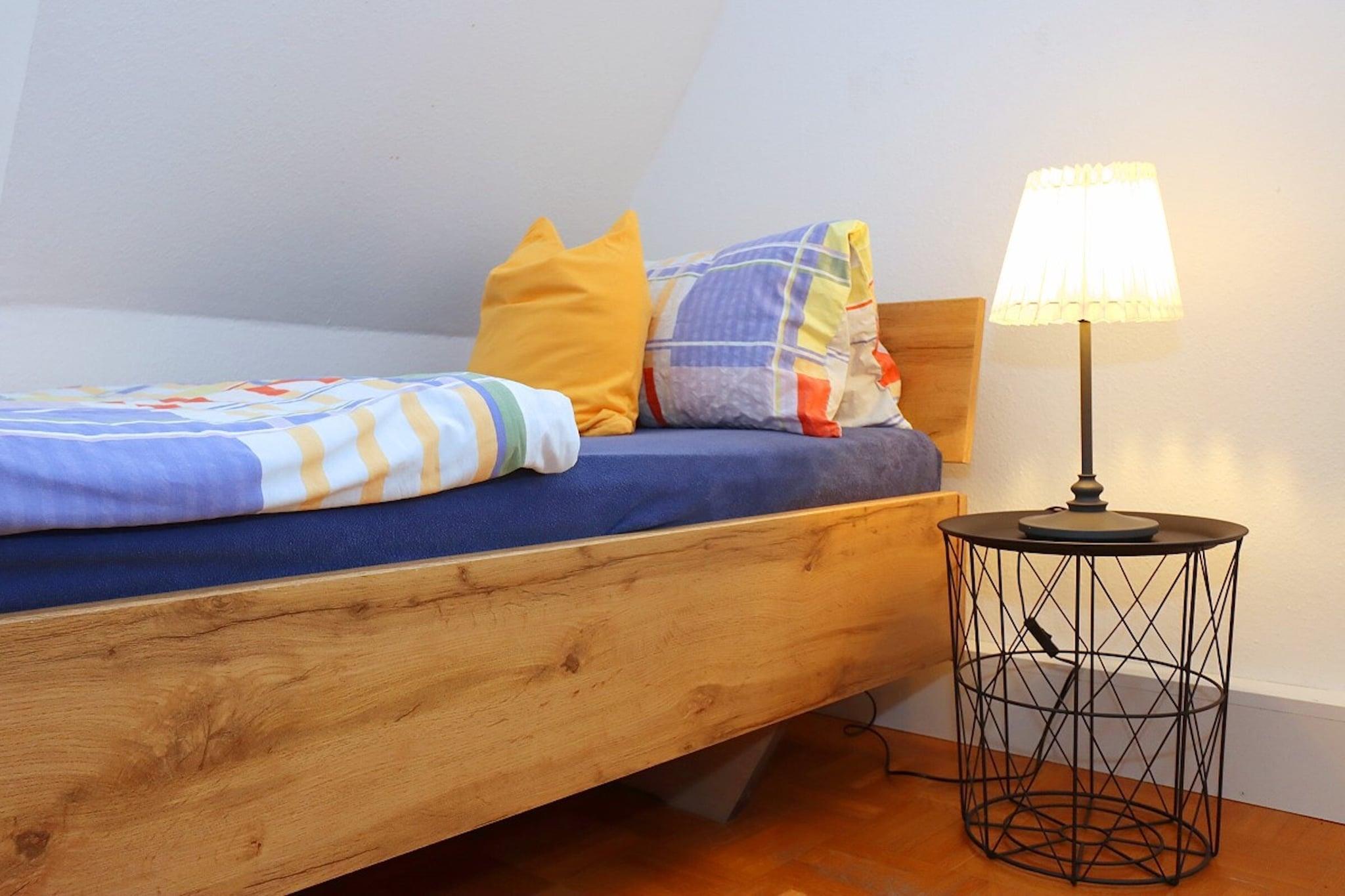 Attic: (Large kitchen(TV(flatscreen, satellite), radio, electric kettle, toaster, cooker(4 ring stoves, ceramic, electric), coffee machine(filter), oven, dishwasher, fridge), bedroom(double bed or 2 single beds(90 x 200 cm)), bathroom(shower, washbasin, toilet, hairdryer)) tumble dryer(shared with the the owner and other guests), cot, washing machine(shared with the the owner and other guests), heating(central), garden(shared with other guests, partially fenced, 800 m2), garden furniture, BBQ(charcoal), parking, high chair, ironing board, iron, lounge set, party games, Garden shed, Swing set