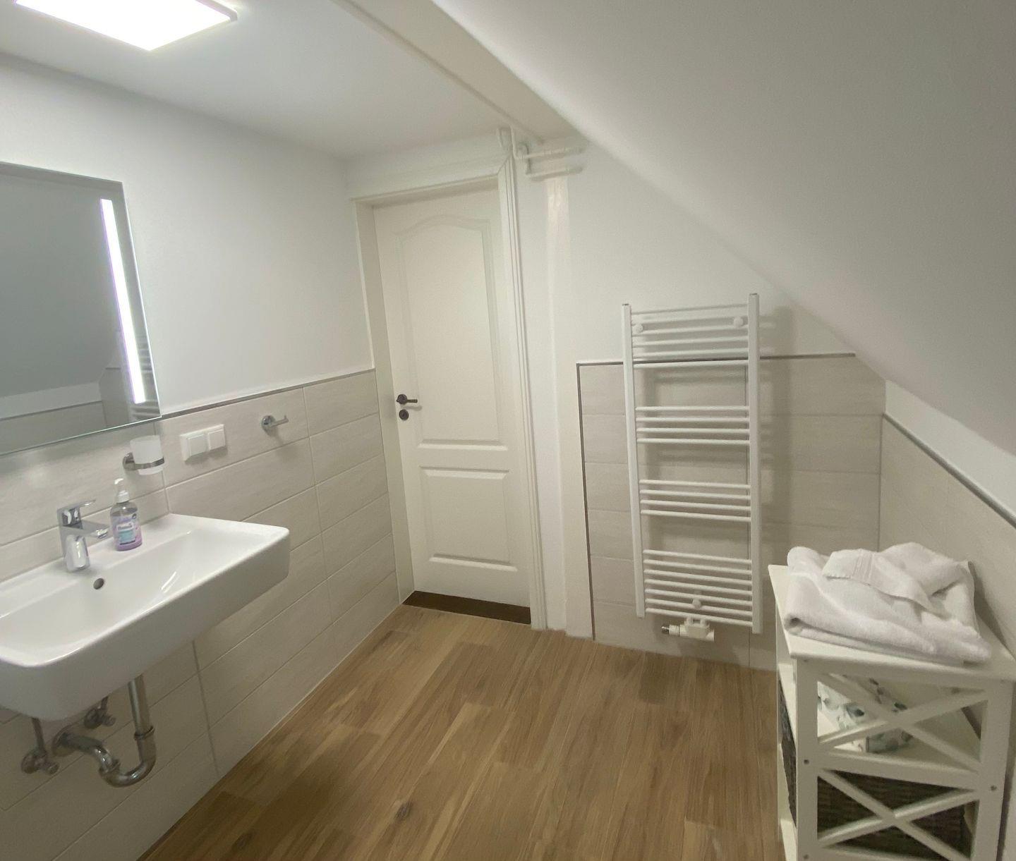 Die Ferienwohnung "Goor" befindet sich im ersten Obergeschoß des Reethauses. Sie bietet auf ca. 92 qm Wohnfläche maximal 5 Personen Platz. Die Wohnung besteht aus zwei Schlafzimmern mit je einem Doppelbett und einem Wohnzimmer mit einer Schlafcouch, wo eine weitere Person übernachten kann. Im Wohnzimmer gibt es einen Flachbild-TV und DVD-Player. Die separate Küche bietet neben einem Ceranherd, Backofen, Geschirrspüler, Mikrowelle natürlich auch Kaffeemaschine, Toaster und Wasserkocher. Im Bad gibt es eine Dusche und einen Haartrockner. Eine Waschmaschine steht zur gemeinschaftlichen Nutzung zur Verfügung. Ein Kinderbett sowie ein Hochstuhl sind vorhanden. Haustiere sind willkommen! Bitte beachten Sie, dass für Haustiere zusätzliche Gebühren erhoben werden.