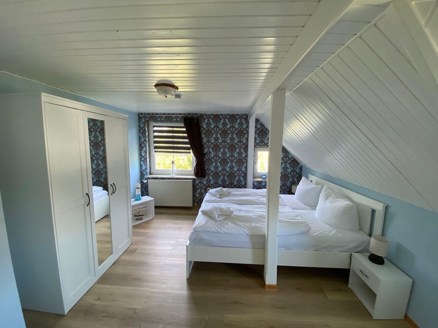 In dem kleinen, wunderschönen Örtchen Vilmnitz, direkt an der "Deutschen Alleenstraße" zwischen dem Ostseebad Binz und der zauberhaften Residenzstadt Putbus gelegen, befinden sich im reetgedeckten Ferienhaus insgesamt drei Ferienwohnungen. Die Ferienwohnung "Vilm" befindet sich im Erdgeschoß des Reetdachhauses. Die Ferienwohnungen "Goor" und "Muglitz" sind über eine separate Außentreppe im 1. OG zu erreichen. Die Wohnung "Vilm" mit einer Wohnfläche von ca. 105qm bietet Platz für maximal 5 Personen. Die Wohnung "Goor" mit einer Wohnfläche von ca. 92 qm bietet Platz für insgesamt 5 Personen. Die Wohnung "Muglitz" mit einer Wohnfläche von ca. 50 qm bietet Platz für insgesamt 3 Personen. Alle drei Wohnungen zusammen sind ideal für einen Urlaub mit Freunden oder in Großfamilie. Im liebevoll angelegten Bauerngarten stehen ausreichend Sitz-und Grillmöglichkeiten zur gemeinschaftlichen Nutzung zur Verfügung.Das insgesamt ca. 3000 qm große eingezäunte Grundstück verfügt über einen gepflasterten Vorplatz, über den man den großen Carport mit 3 Stellplätzen und Fahrradunterstellmöglichkeiten erreicht. Ihr Elektroauto können Sie während Ihres Aufenthaltes an der privaten E-Ladesäule im Carport laden. Im Haus gibt es ein WLAN und eine gemeinschaftliche Waschmaschine.