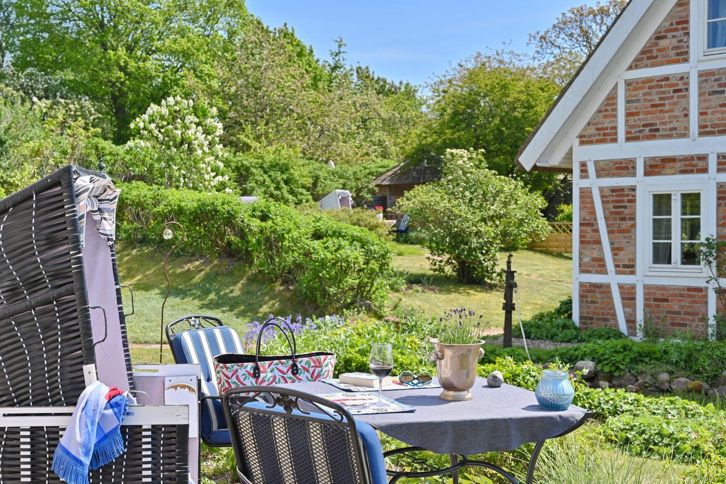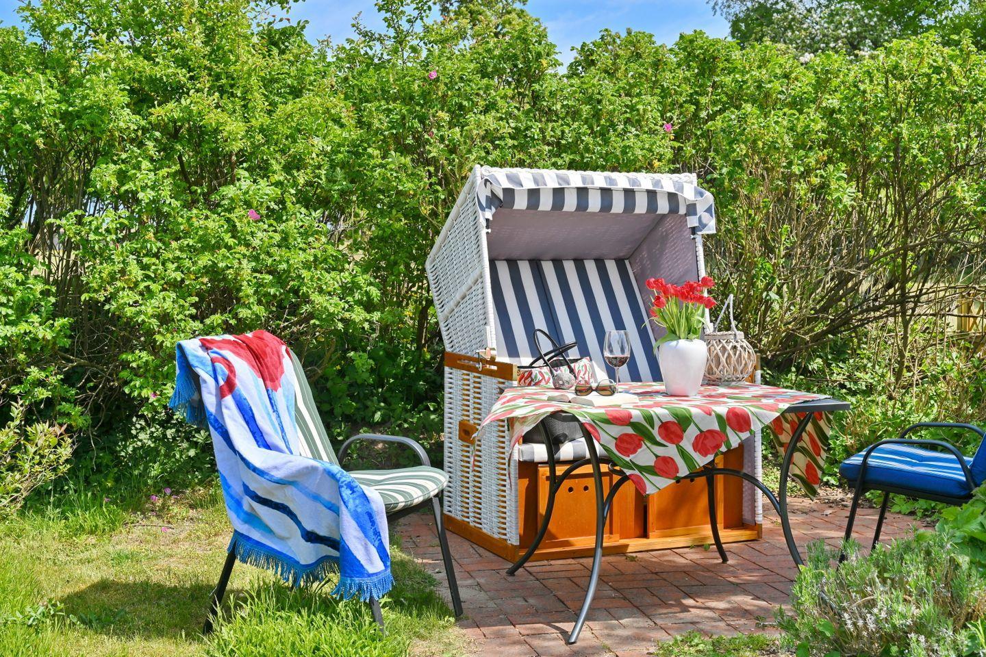 Zu jeder der Wohnungen gehört eine separate Terrasse in der wunderschönen großen Gartenanlage incl. Strandkorb und Gartenmöbeln. WLAN ist vorhanden.