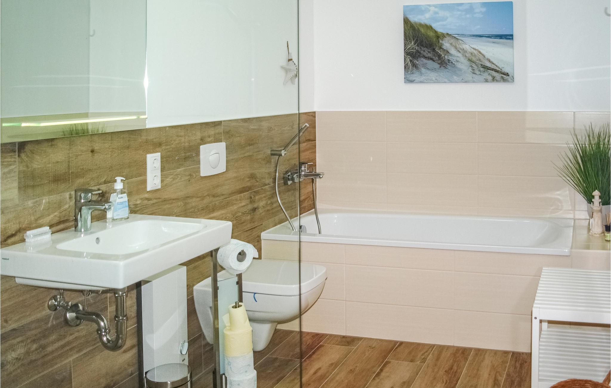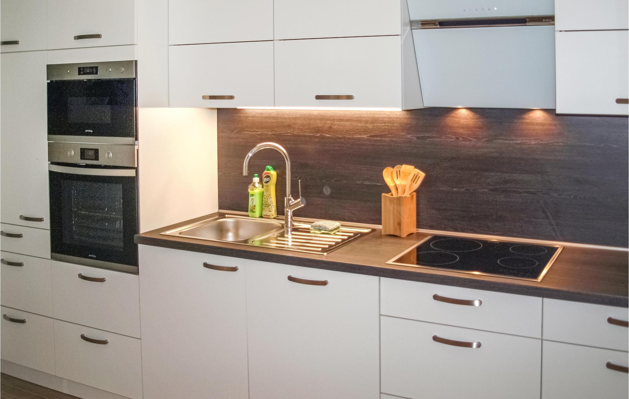 Das separate Schlafzimmer ist mit einem gemütlichen Doppelbett ausgestattet. Auf dem Schlafsofa im Wohnzimmer können es sich ebenfalls 2 Personen gemütlich machen. Das Bad mit Dusche und Badewanne sowie die separate Küche sind modern und komfortabel eingerichtet. Essplatz, Geschirrspüler und Gefrierfach sind hier für Sie vorhanden.