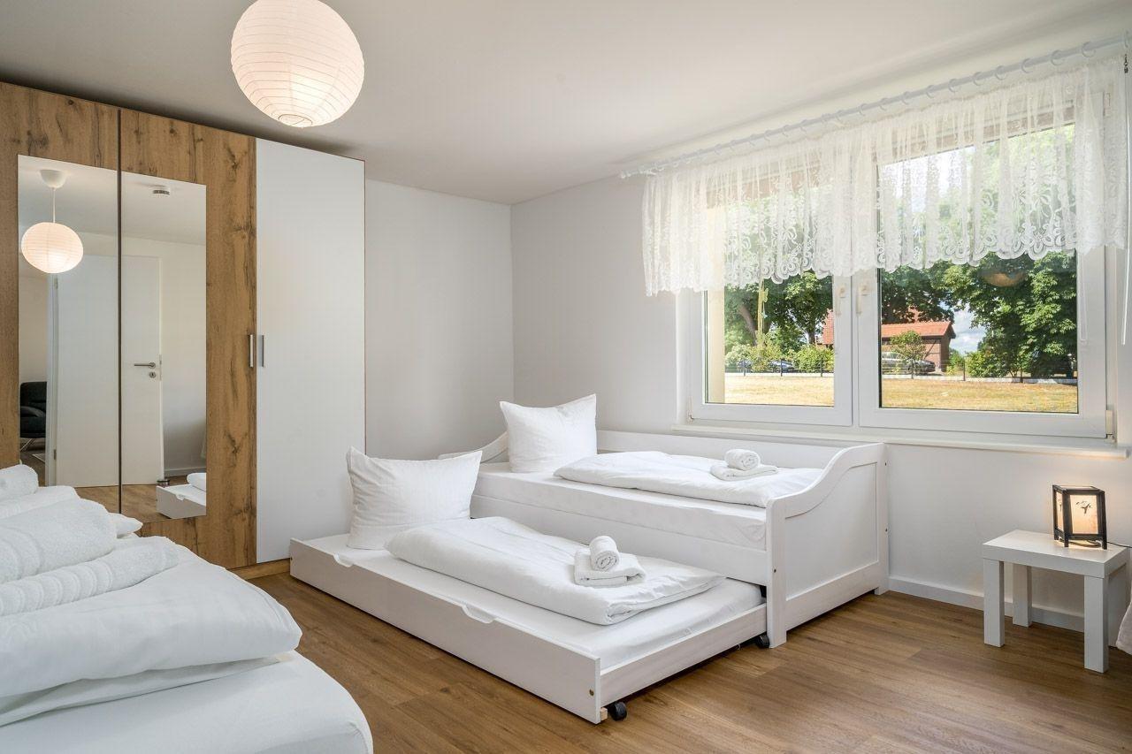 In dieser charmanten Ferienwohnung erwartet den Gast ein durchdachtes Raumkonzept, das Komfort und Funktionalität vereint. Zwei großzügige Schlafzimmer mit insgesamt zwei Doppelbetten und zwei Einzelbetten bieten ausreichend Platz für bis zu sechs Personen. Die offene Küche ist mit modernen Geräten wie Elektro-/Gasherd, Backofen, Kühlschrank, Kaffeemaschine, Gefriermöglichkeit, Toaster und Wasserkocher bestens ausgestattet und lädt zum gemeinsamen Kochen ein.