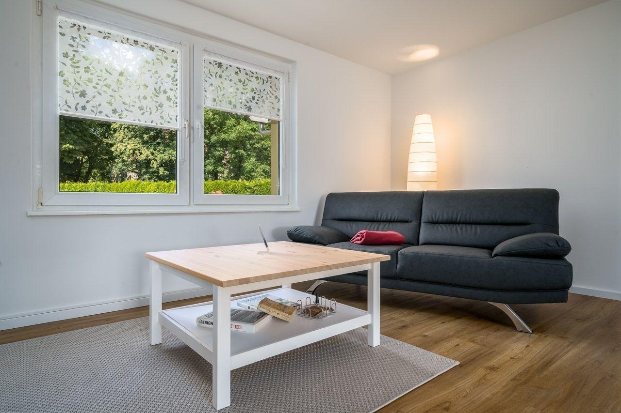 Das helle Badezimmer verfügt über eine bodengleiche Dusche, ein Fenster und natürlich alle notwendigen Utensilien. Der Wohnbereich mit Sofa, TV und HiFi-Anlage schafft eine einladende Atmosphäre. Die Ferienwohnung ist zudem barrierefrei, allergikergeeignet und bietet WLAN für die Gäste. Ein Parkplatz ist ebenfalls vorhanden. Zum Entspannen im Freien stehen ein Sonnenschirm und ein Esstisch bereit. Ein Reinigungsset wird als Starterset geliefert, um einen komfortablen Aufenthalt zu gewährleisten.