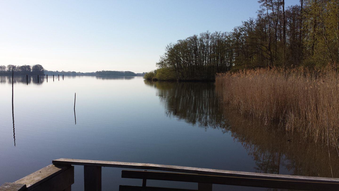 Über einen separaten Hauseingang und einen kleinen Flur gelangen Sie in die erste Etage und zur Ferienwohnung. Diese Treppe läßt sich mit einem Schutzgitter absichern. Das große Schlafzimmer ist mit einem Doppelbett und einem großen Kleiderschrank ausgestattet. Gleich gegenüber befindet sich ein kleines Schlafzimmer mit einem Bett 140x200 - dann ist der Raum auch ausgefüllt. Im Bad mit Dusche und WC gibt es eine Waschmaschine. Der offene Wohn- Essbereich ist mit einer modernen Küche komplett eingerichtet. Das Sofa ist zu einem Dauerschläfer umzuklappen. Für unsere kleinen Gäste: Sandkasten und Rutsche im Außenbereich. Eine gesonderte möblierte Sitzecke im Garten steht unseren Gästen ebenfalls zur Verfügung. Das Grundstück ist ein Wassergrundstück und kann von allen Gästen genutzt werden. Der Seezugang und die Terrasse am Wasser können ebenfalls genutzt werden.