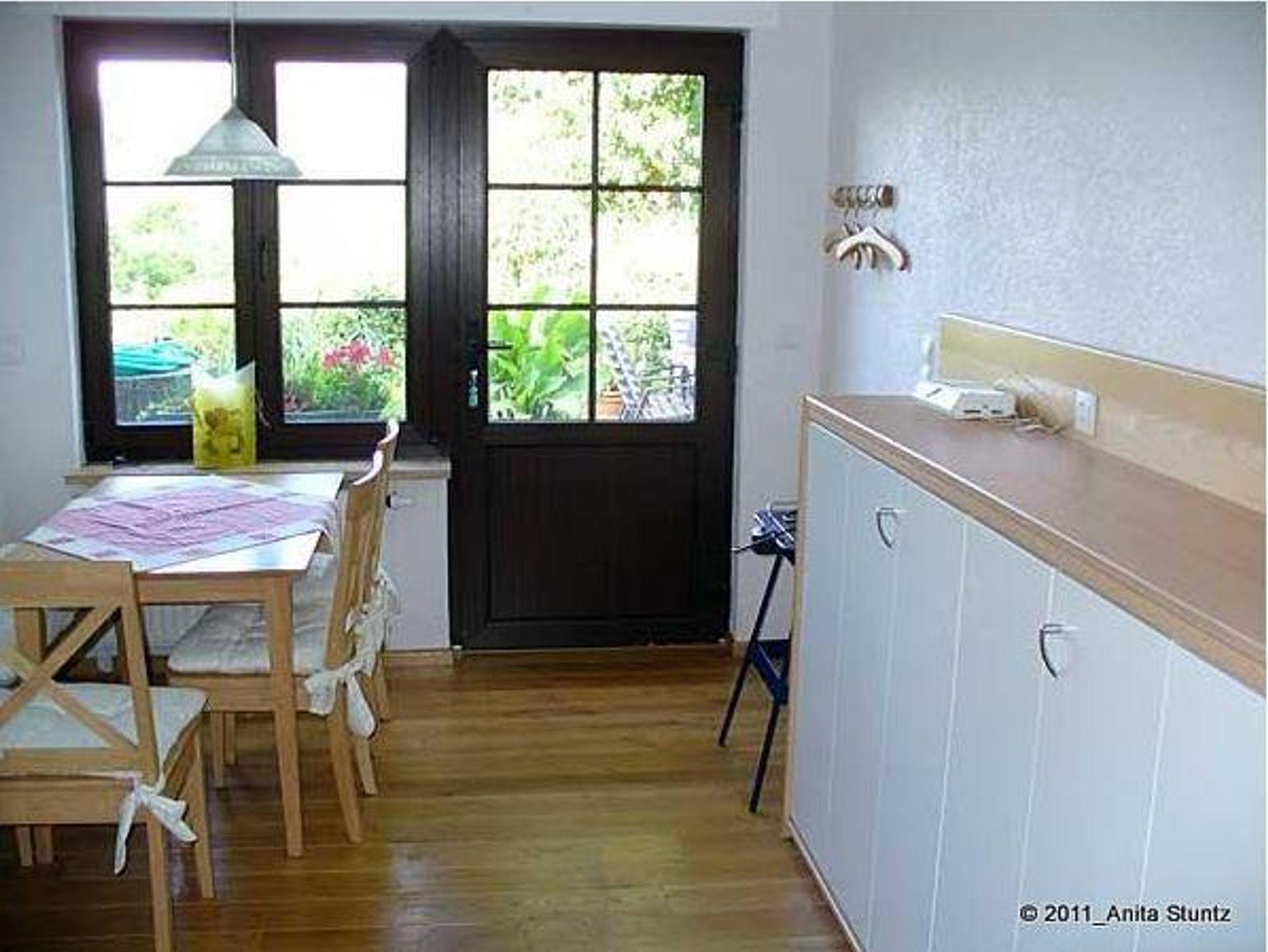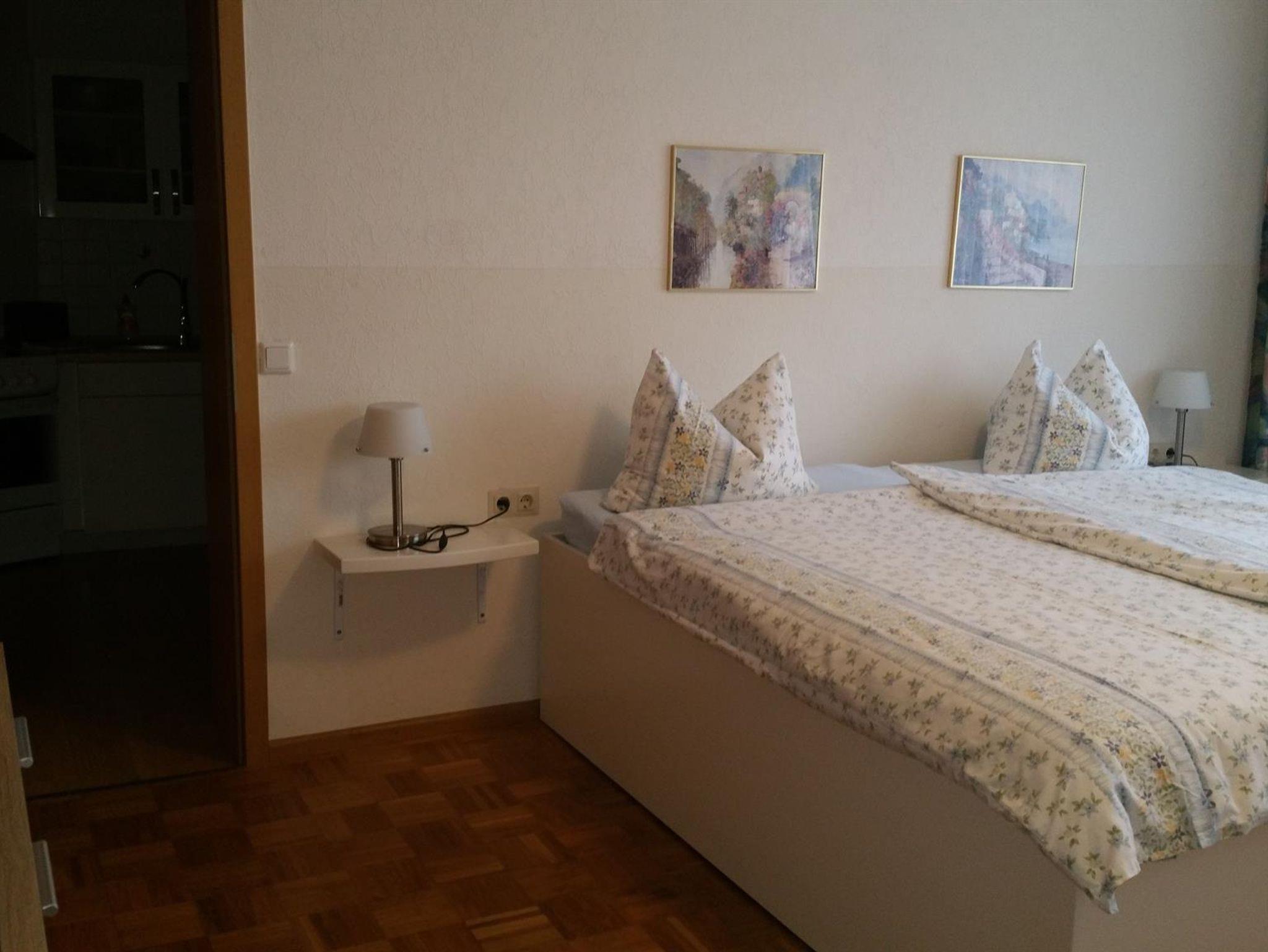 Die Ferienwohnung für 2 Personen ha ca. 40 qm. Sie gliedert sich in Wohnküche mit einem Not-Schrankbett, Schlafzimmer und Badezimmer mit Waschbecken, WC und Dusche, komplett mit Wäsche ausgerüstet. Der eigentliche Zugang zur Wohnung 2 erfolgt via Hausgarten durch die Wohnküche.