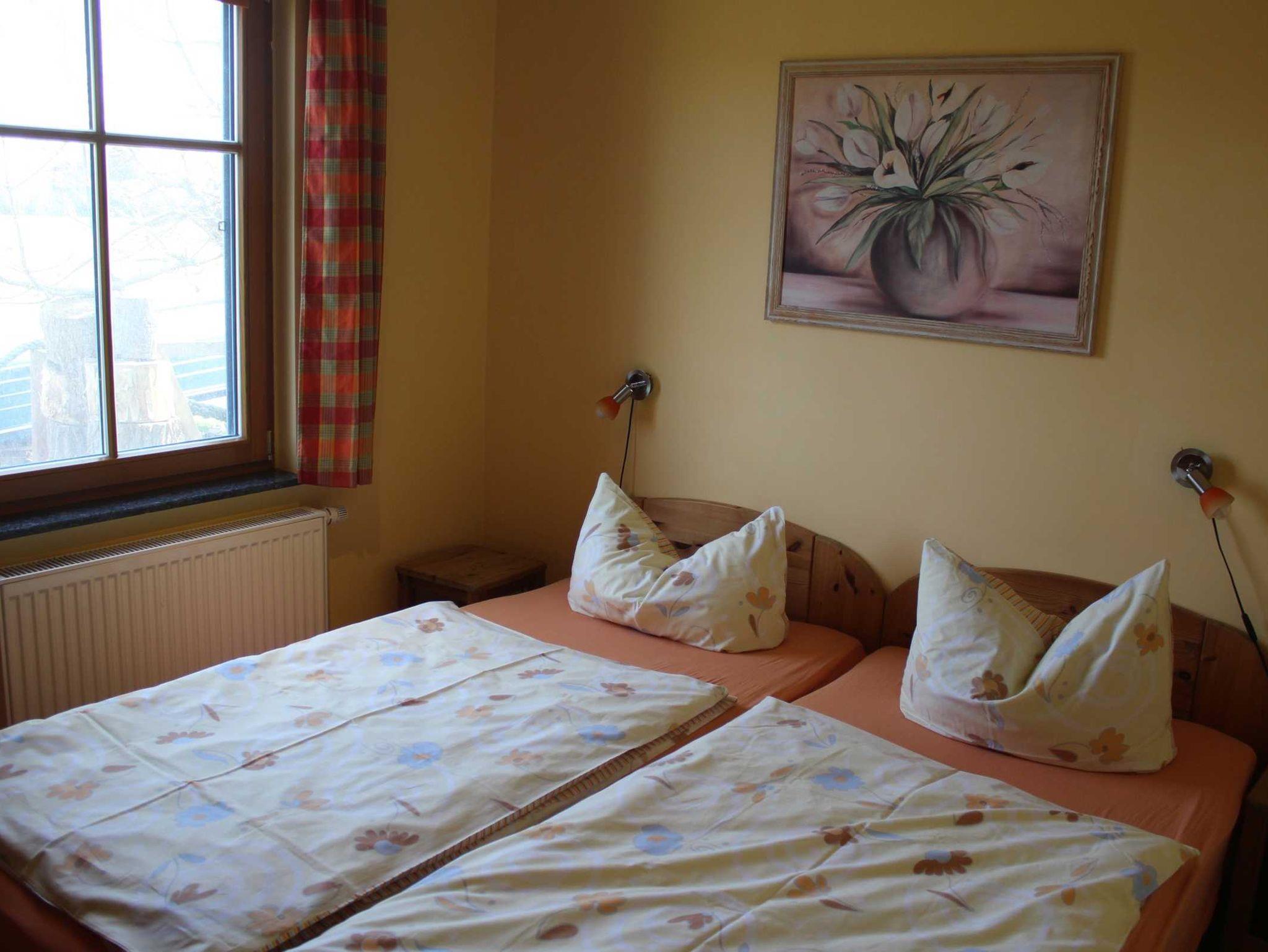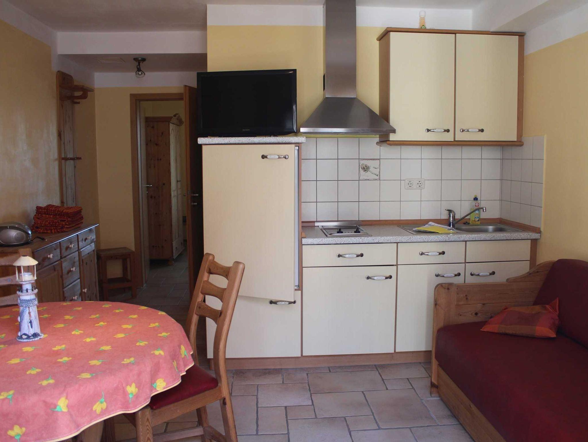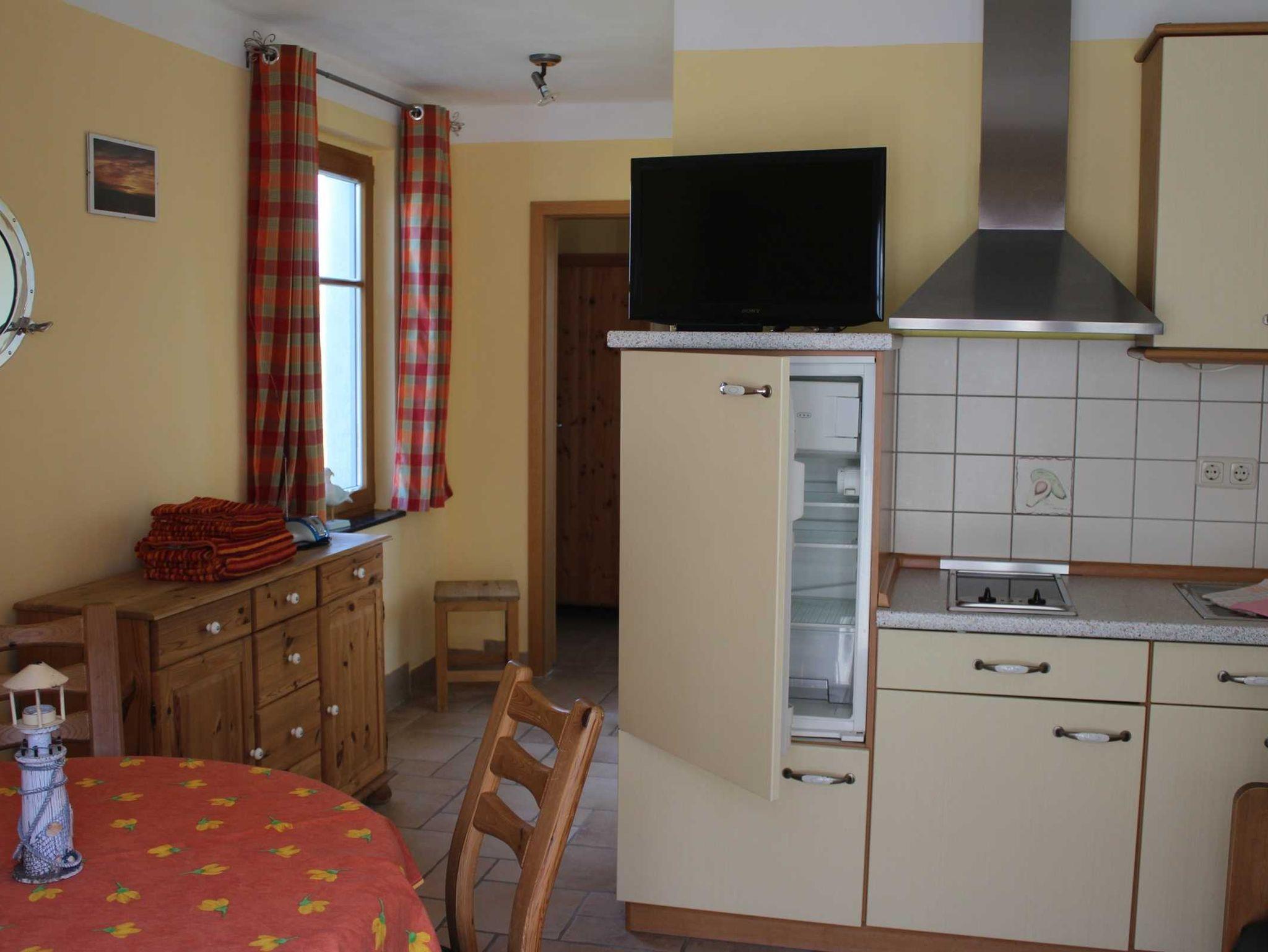 Gemütliche 35 qm große Ferienwohnung im EG geeignet für 2-4 Personen. Sie ist mit 1 Doppelbett im Schlafzimmer und 1 Schlafcouch im Wohn-/Küchen-/Essbereich ausgestattet. Im Wohnzimmer haben Sie Sat-TV, Radio und einen großen Esstisch für gemütliches beisammen sein. In der vollausgestatten Küche befinden sich, ein Cerankochfeld mit 2 Kochplatten, Kaffeemaschine, Toaster, Wasserkocher, Kühlschrank mit TK-Fach.
