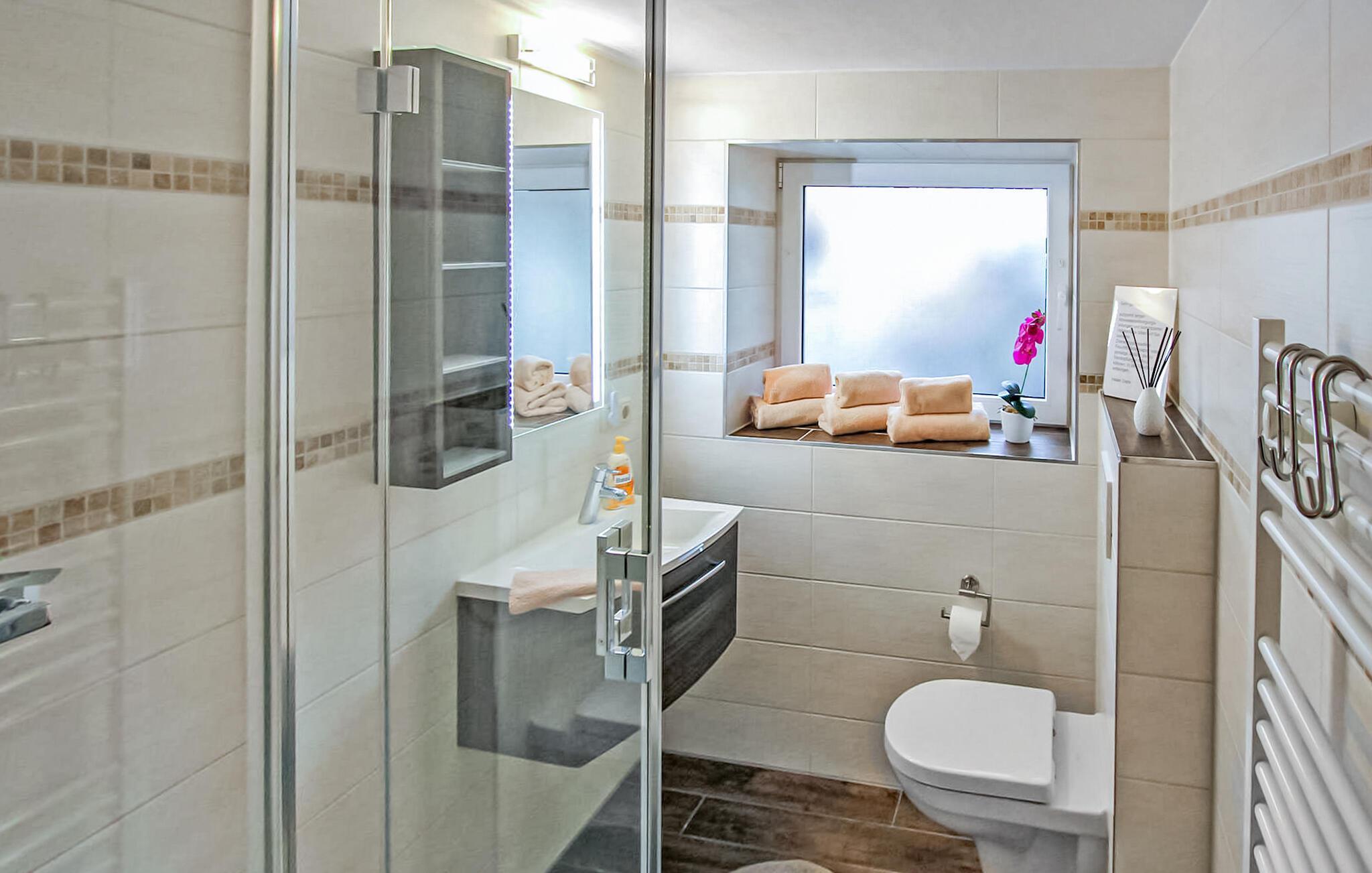 Badezimmer (nr. 1) - WC. Warmes und kaltes Wasser. Dusche