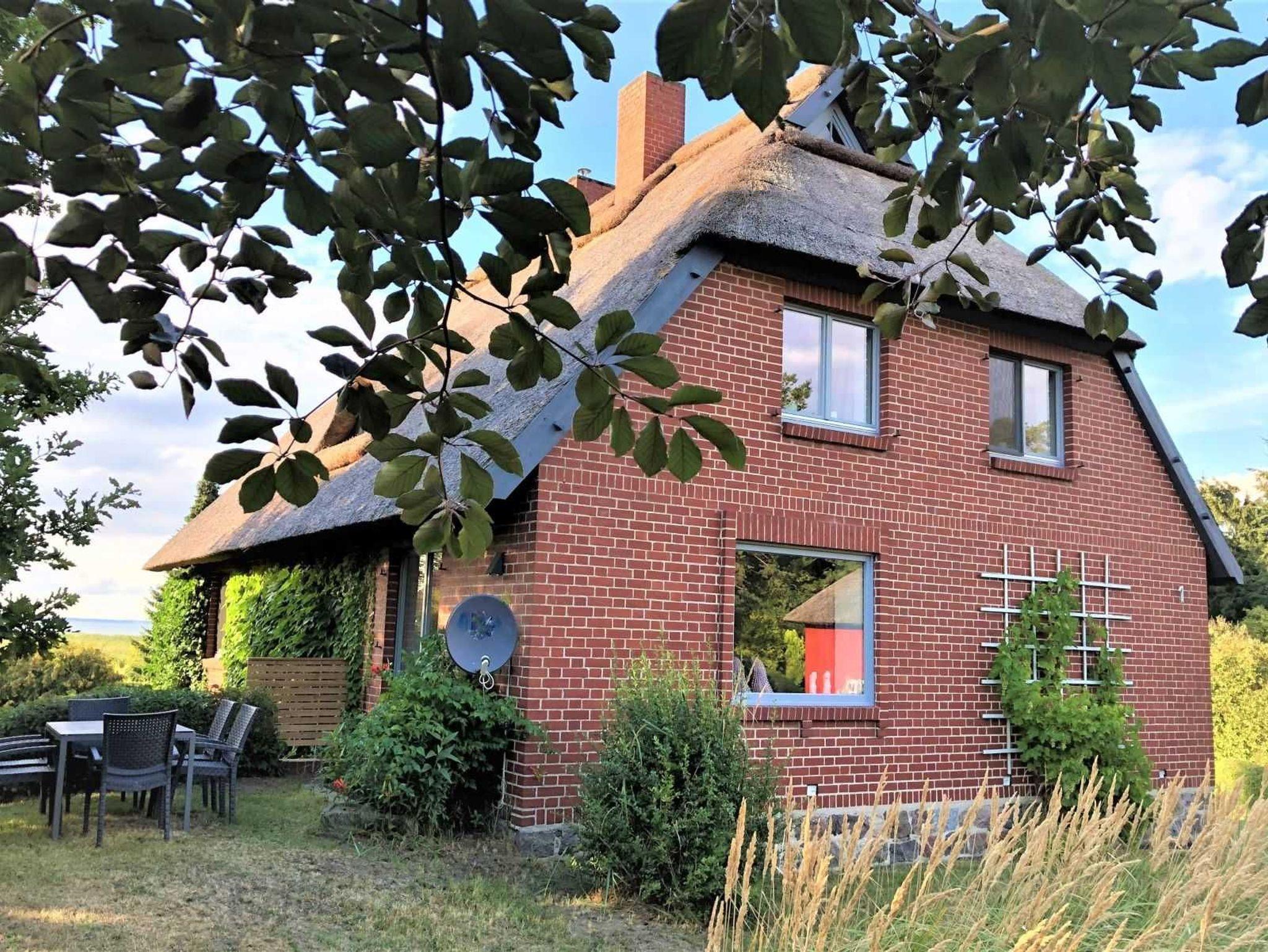 Durch die erhöhte Lage des Hauses genießen Sie den wunderschönen Ausblick über das Stettiner Haff bis zur Insel Usedom und in die umliegende Natur.