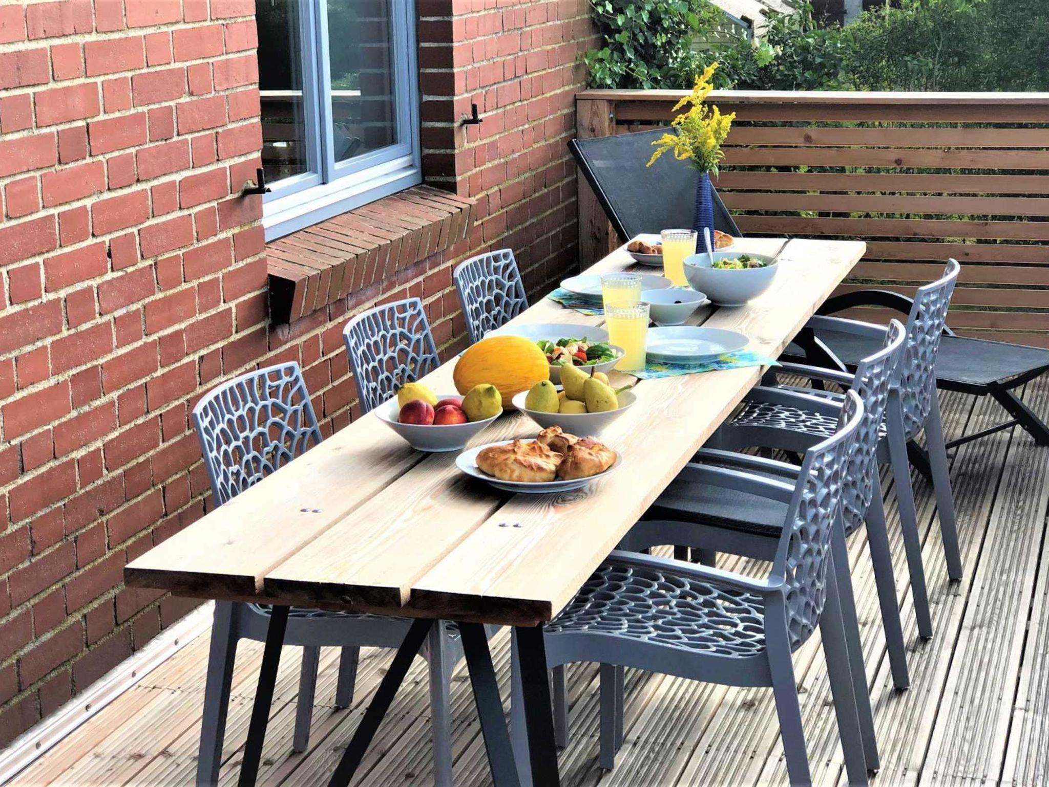 Sie haben direkten Zugang vom Wohnbereich in den Garten und auf den großen Balkon, welche zum Entspannen und Verweilen einladen. Hier können Sie den Tag bei einem Glas Wein oder gutem Essen ausklingen lassen.