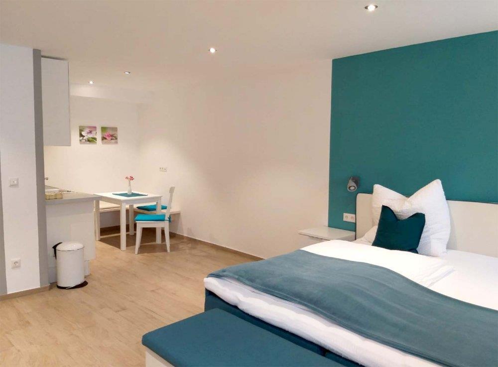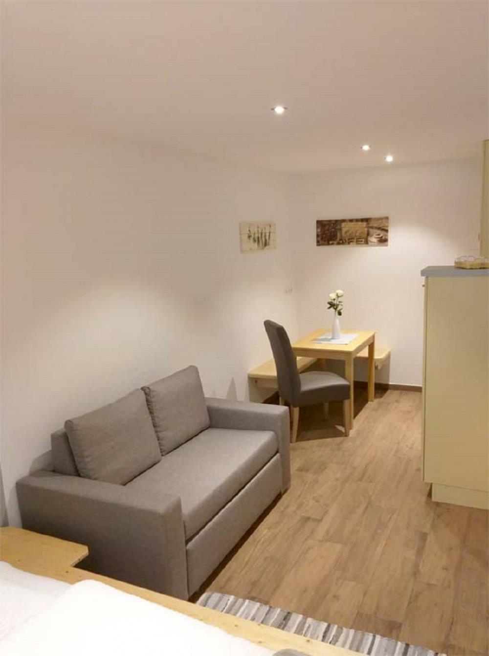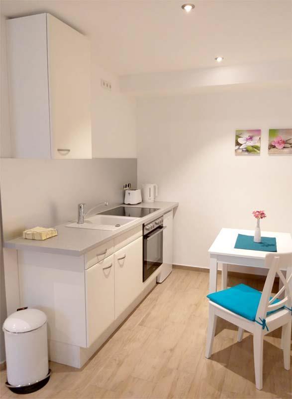 Unser barrierefreies Apartment im Erdgeschoss verfügt über ein Doppelbett 180x200cm, Schlafsofa, Flachbild-TV, eine gut ausgestattete Küchenzeile mit Essbereich. Das Badezimmer verfügt über eine ebenerdige Dusche, WC und Haartrockner.