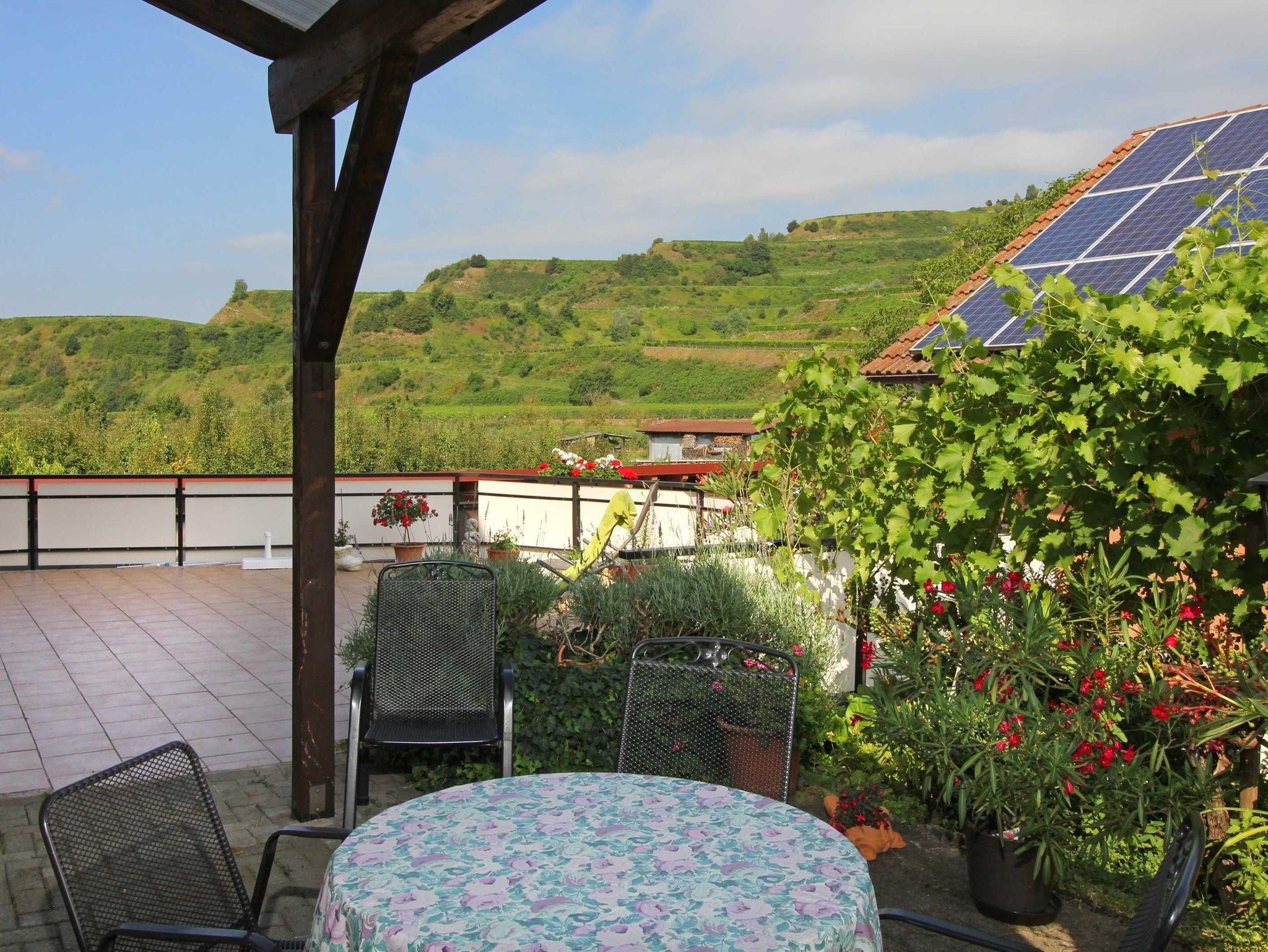 Wein- und Gästehaus Baumer bietet Ihnen eine komfortable Ferienwohnung für 2-4 Personen, bestehend aus 2 Schlafräumen, Aufenthaltsraum mit TV und einer komplett eingerichteten Küche. Dusche ,WC und sep. WC. Überdachte Terrasse große Sonnenterrasse mit Blick auf die Weinbergterrassen und Obstgärten. Parkplatz beim Haus.