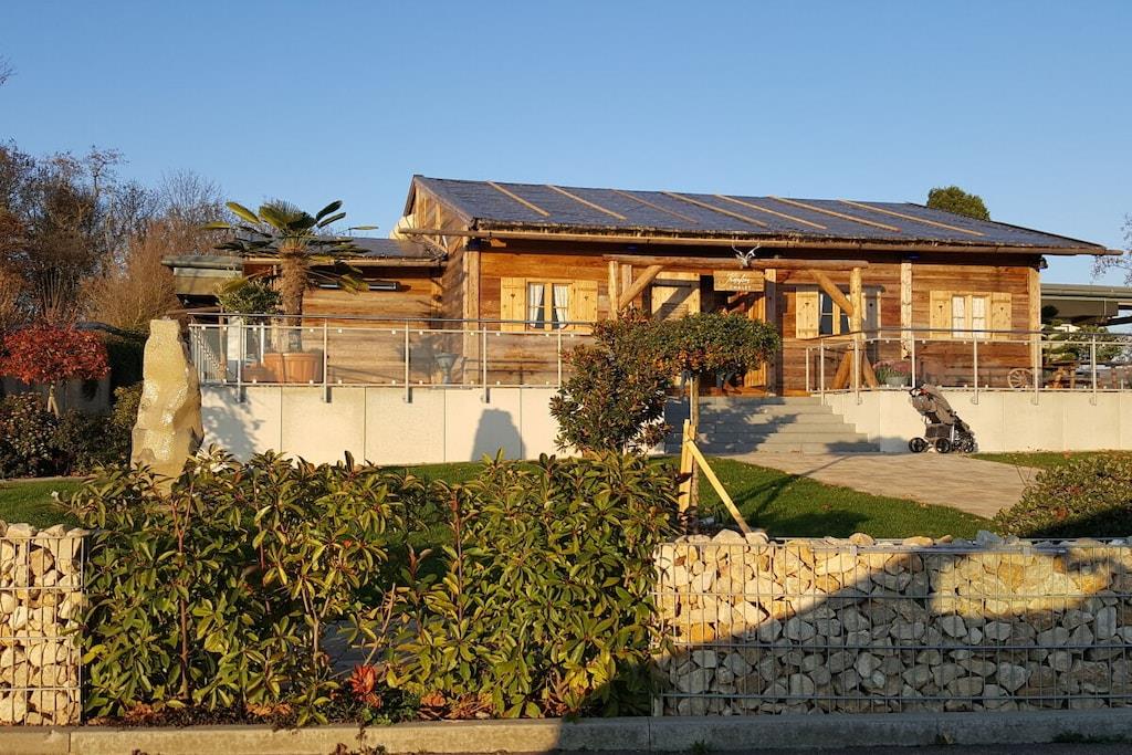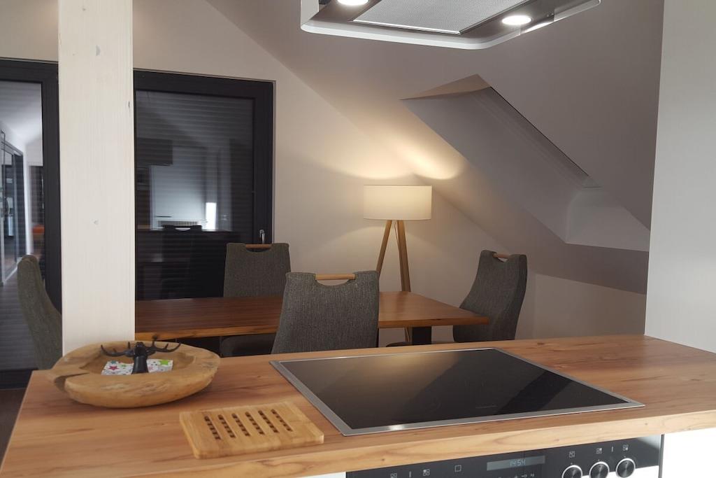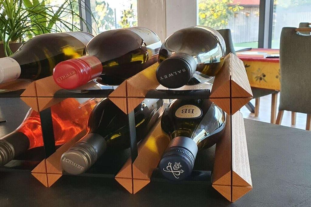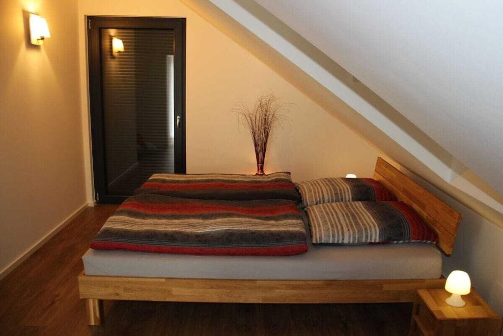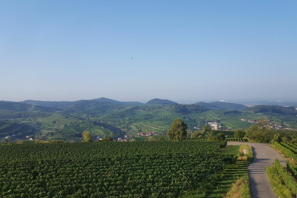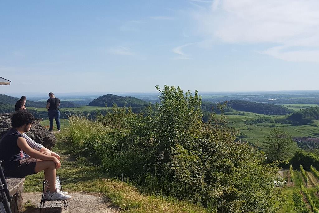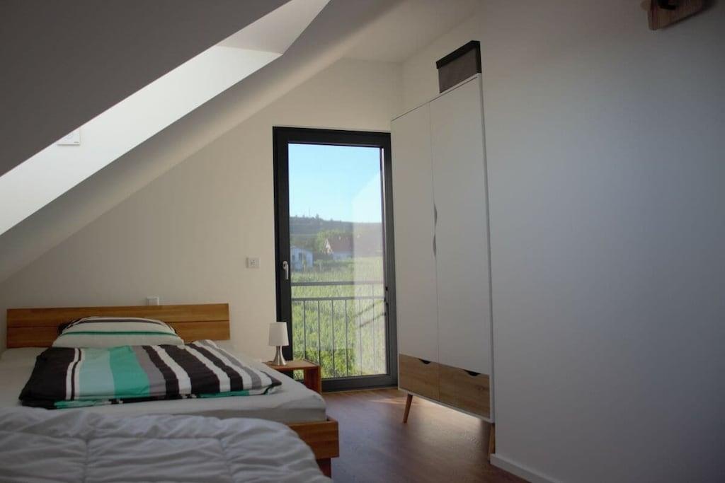 Paradiesische NEUE Familien-Ferienwohnung mit 2 Schlafzimmern (2Pers. + 3Pers.) 12qm Süd-Loggia und Fernsicht in alle 4 Himmelsrichtungen!!! Angezeigter Preis gilt für bis zu 2 Personen !!! Je 20,-- zusätzlich für 3., 4. und 5. Person pro Nacht! Naturnahes Wohnen im Grünen auch für die Familie mit bis zu 5 Personen! Absolute Ruhe am Ortsrand, mit Weitblick in die Reben! Wir haben diese Wohnung Anfang 2020 für Sie fertig gestellt. Über eine Außen-Treppenanlage kommen Sie direkt in diese sonnendurchflutete große Dachgeschoss-Wohnung. Im offenen, geschmackvoll eingerichteten Wohn-Essbereich finden Sie eine voll ausgestattete Küche, einen großen Tisch für 6 Personen und ein Sofa mit Sessel und Sitzsäcken. Auf der großen Süd-Loggia können Sie den Fernblick genießen, frühstücken/essen/trinken, der Blick auf das üppige Grün der umgebenden Reben lässt Sie vollkommen entspannen! In 2 separaten Schlafzimmern finden Sie ausreichend Platz auch für die große Familie!
