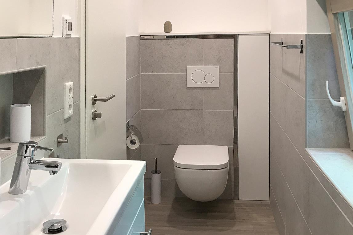 Badezimmer mit Fenster: 1, Dusche: 1, Etagendusche o. -bad, Etagen-WC, Separates WC, Waschbecken: 1, WC, WC und Bad: 1, WC und Dusche, WC und Dusche auf der Etage