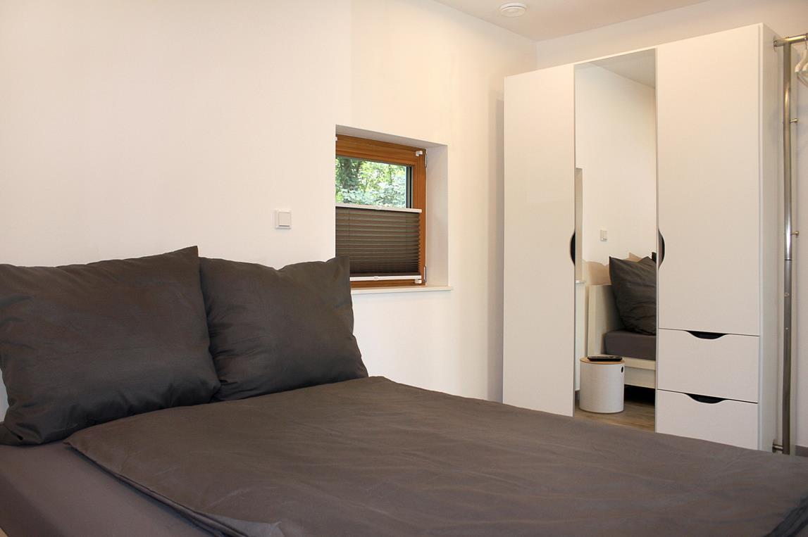 Das Cube-House mit knapp 40 qm Wohnfläche verfügt über ein Wohnzimmer mit Schlafcouch und Küchenzeile, über ein Schlafzimmer mit französischem Doppelbett (200x160) und ein Duschbad. Jeder Raum verfügt über eine unabhängig regelbare Fußbodenheizung.