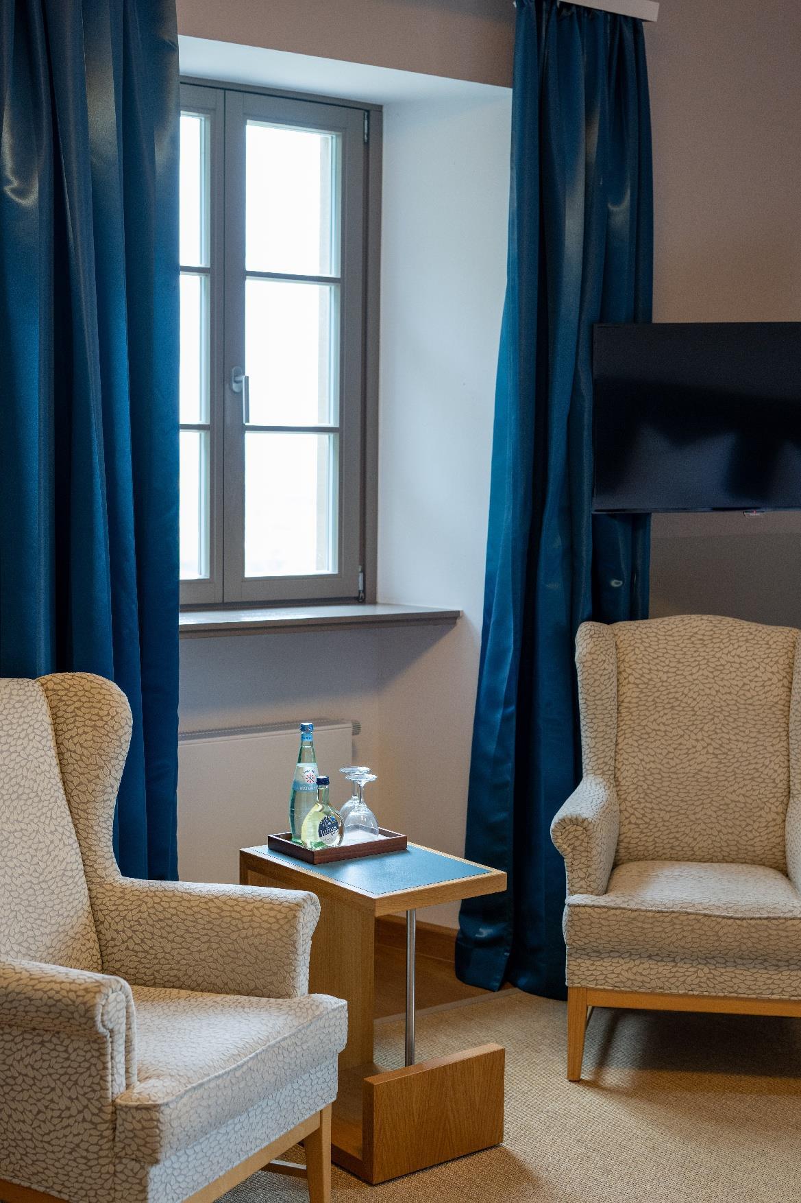 Unsere Premium-Zimmer mit genügend Platz (ca. 25-31m²), hohem Komfort und dem besonderen Blick auf die Weinberge und den Altmain der Mainschleife. Das Zimmer verfügt über zwei gemütliche Wohlfühlsessel und ein luxuriöses Boxspring-Bett um ihnen bestmögliche Erhohlung zu ermöglichen. Diese Buchungskategorie beinhaltet kostenfreies WLAN, einen Parkplatz und die Nutzung des regionalen Frühstücksbuffets. In ihrem Zimmer befindet sich außerdem ein Flachbild-TV mit großer Programmauswahl, eine Kaffee-/Teebar und ein Safe für ihre Wertgegenstände.