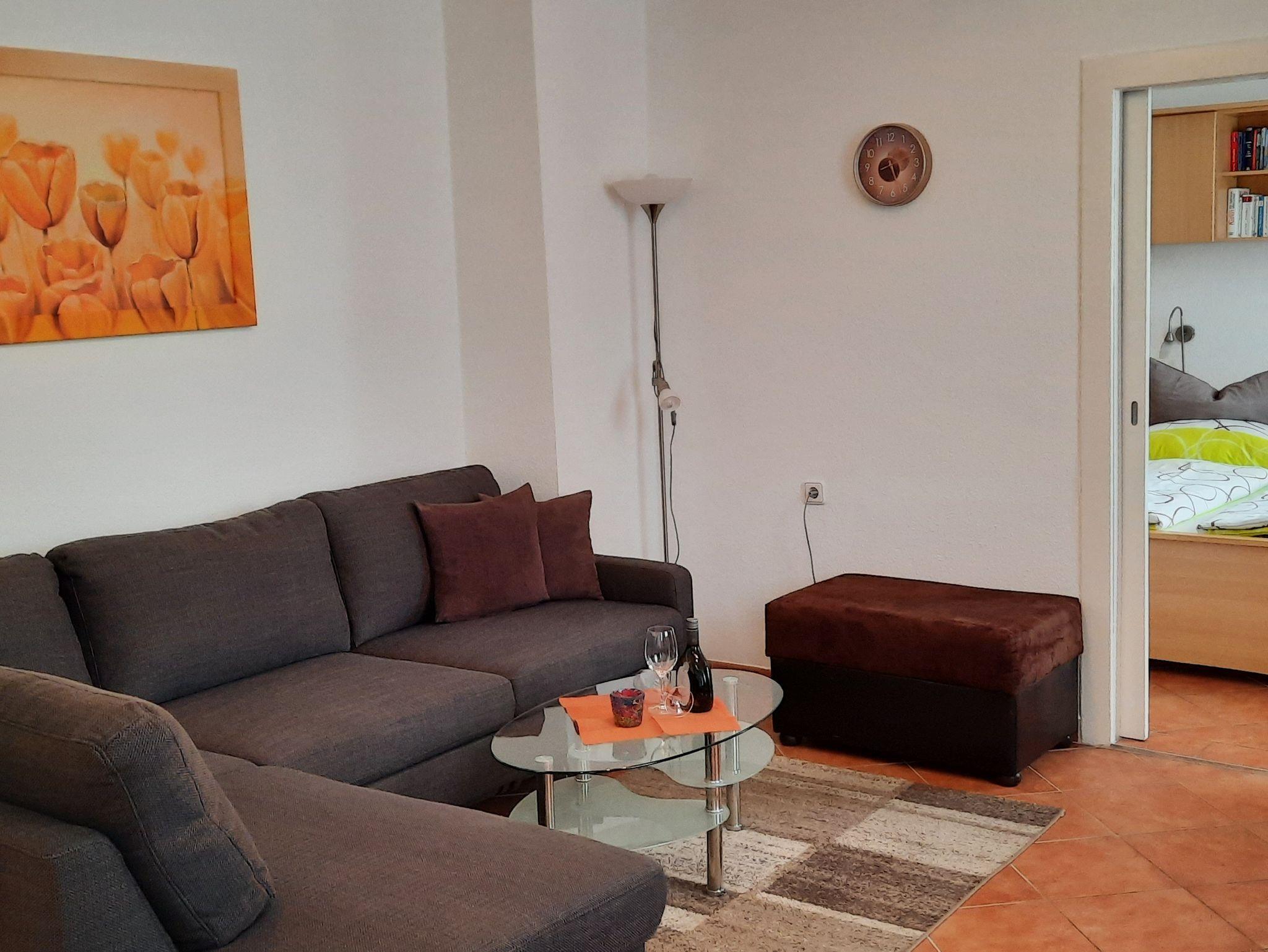 Der großzügigen Wohnraum mit Schlafcouch, Flachbild-Sat-TV und Spielesammlung ist der Mittelpunkt der Wohnung. Das Schlafzimmer ist geräumig mit Doppelbett und Einbauschrank, Safe, sowie kleiner “Bibliothek”.
