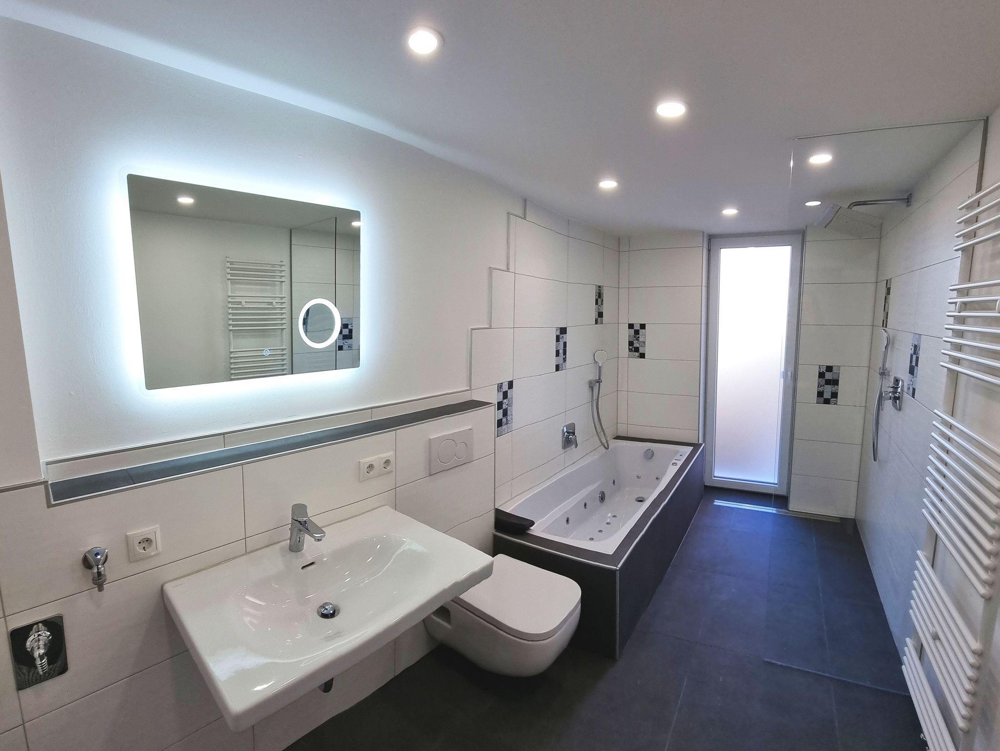 - Whirlpool-Badewanne 170x70cm mit integrierter Beleuchtung und 18 Düsen