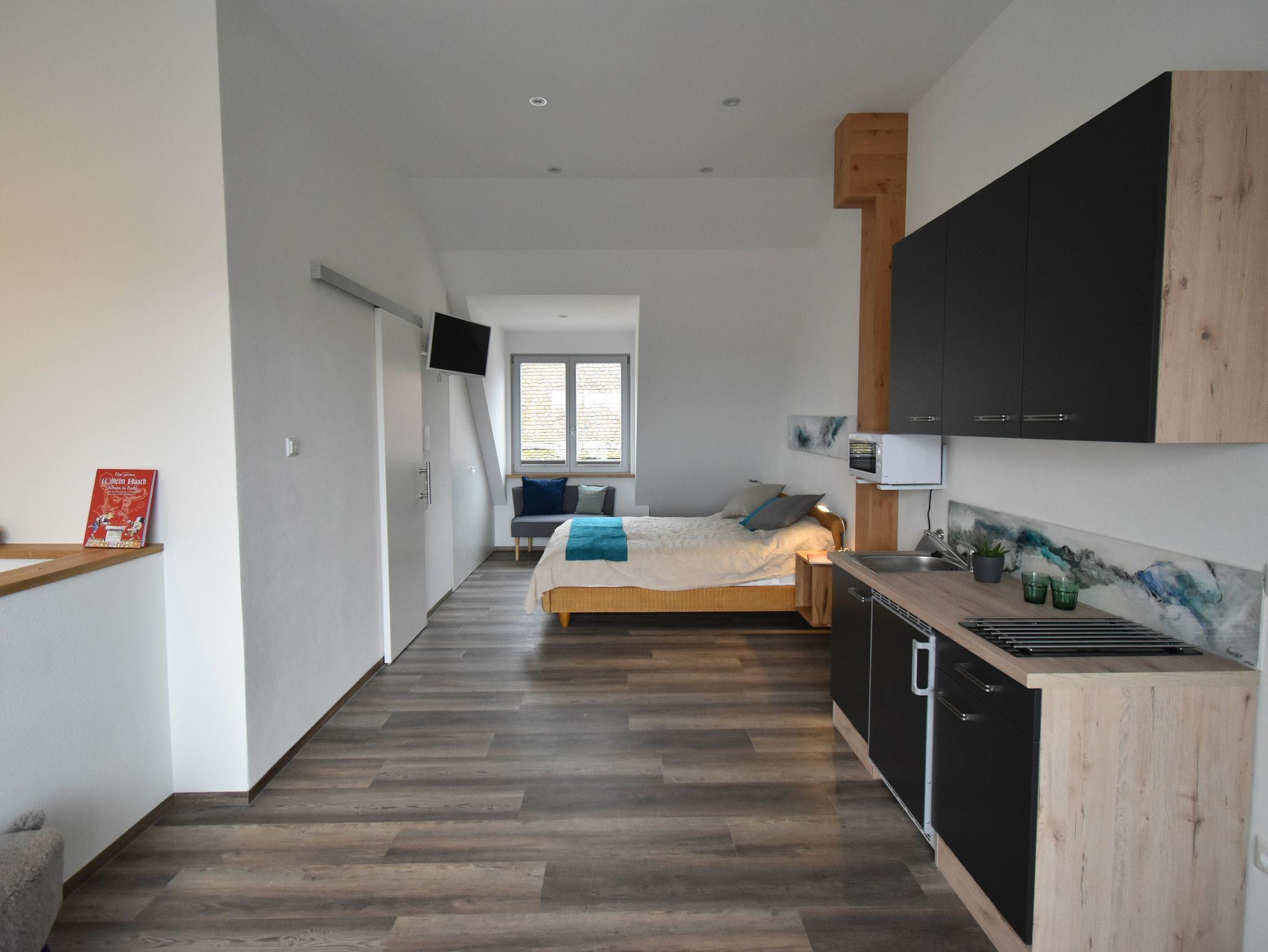Das Designer Appartement Mare erwartet Sie mit stilvoller Einrichtung mitten in der Altstadt Volkachs.