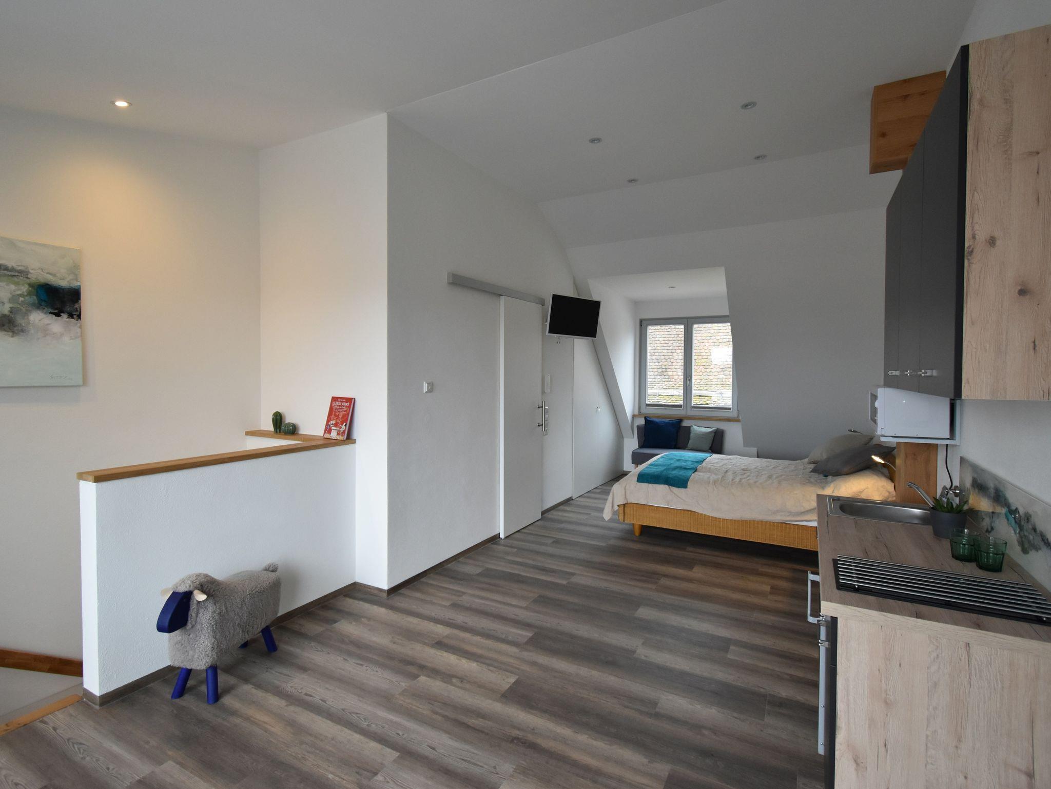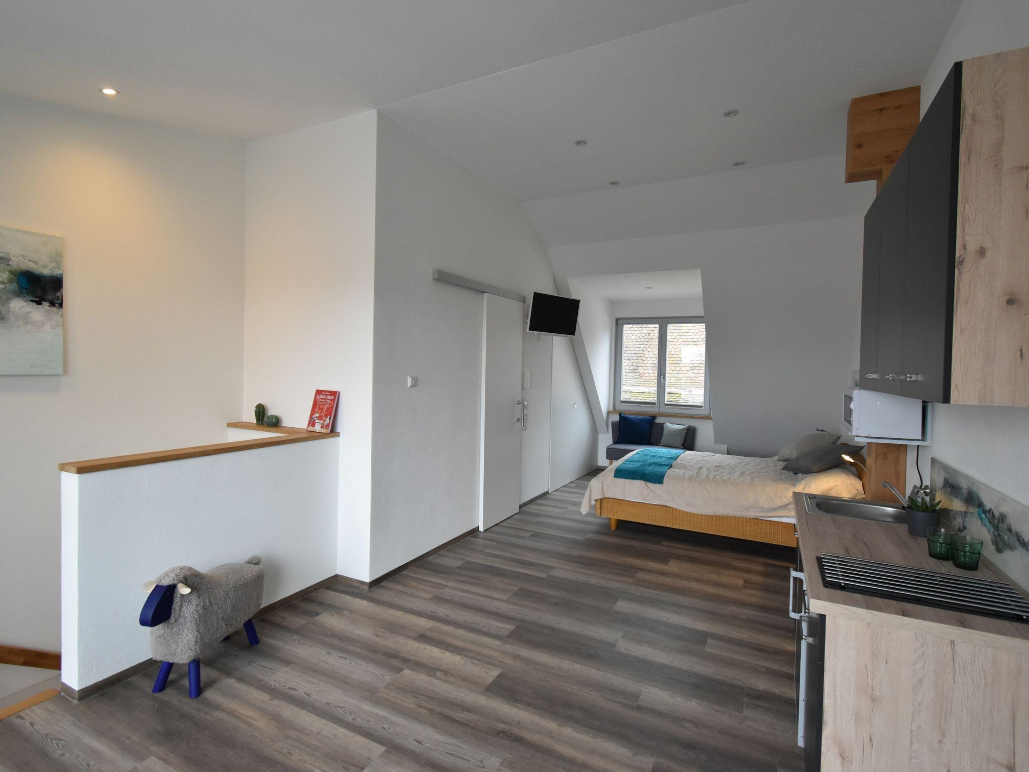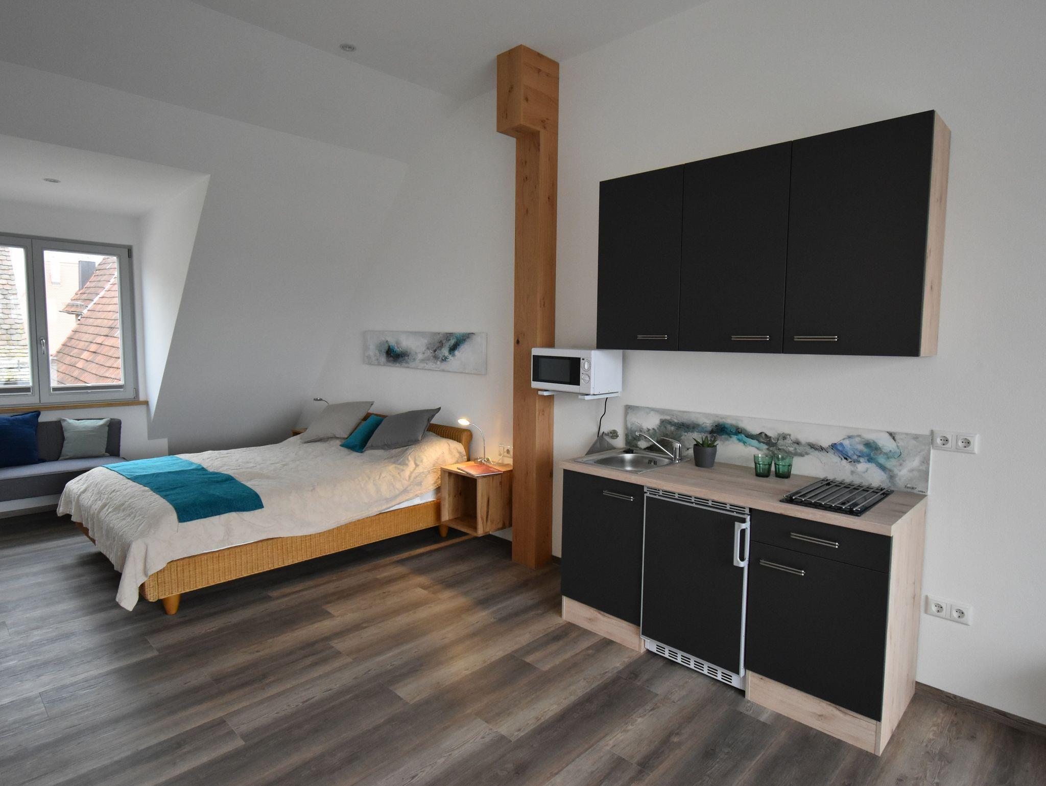Das Appartment mit einer Größe von 50 qm verfügt über ein Wohn-/Schlafzimmer mit Küchenzeile sowie einer separaten Sitzgelegenheit und SAT-TV. Im gemütlichen Doppelbett können Sie sich von Ausflügen in die Altstadt und Umgebung erholen.