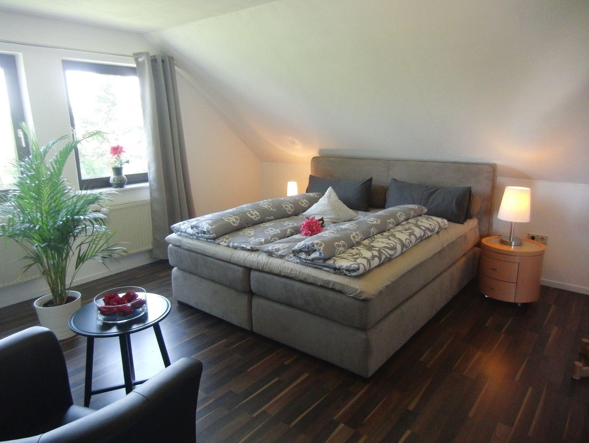 Vorhanden sind drei Schlafzimmer. Sie haben die Wahl zwischen einem großen Boxspringbett, einem Doppelbett mit hochwertiger Matratze, sowie zwei Einzelbetten. Zusätzlich ist noch eine Schlafcouch vorhanden.